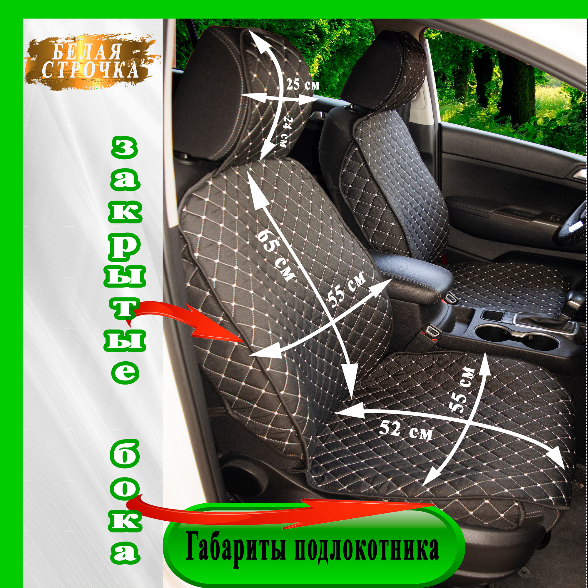 MELKUMYANPRIDE/ Накидки чехлы на переднее сиденье автомобиля 2шт. Белая/ строчка