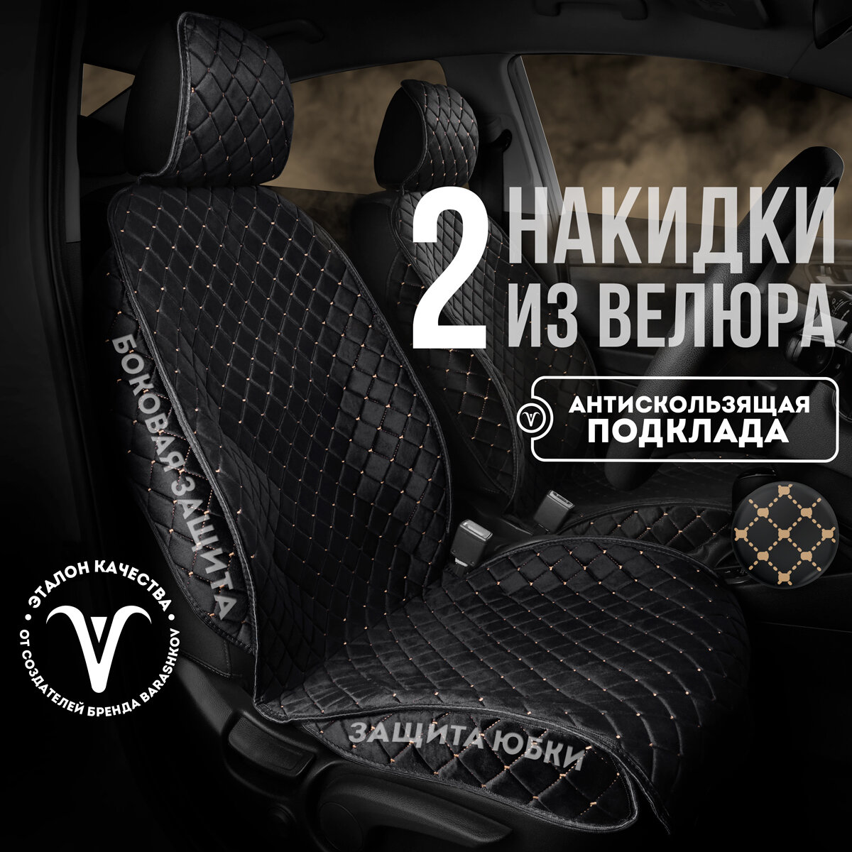 СохранитьCarCape/ Накидки на сиденья автомобиля из велюра 2 шт. Коплект накидок на передние сиденья. Модель ISTANBUL+ с боками. Черный/бежевая строчка интересное: