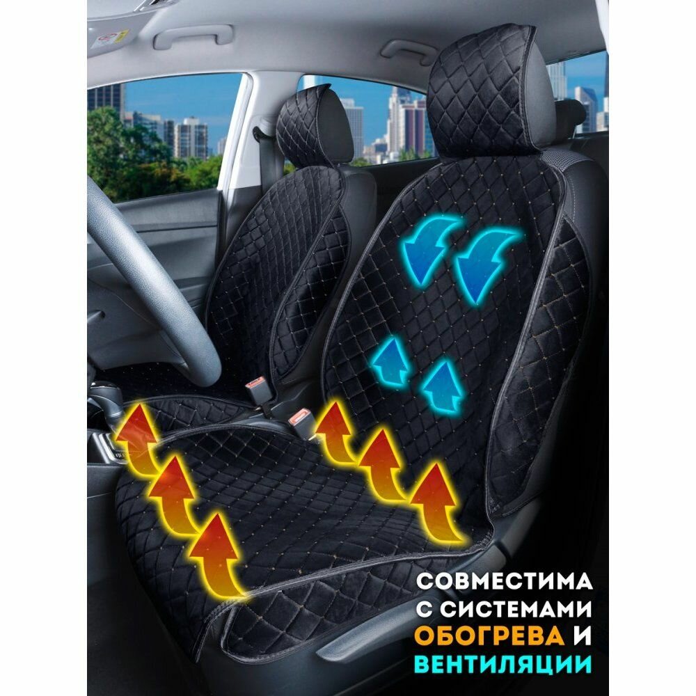 Купить CarCape/ Накидки на сиденья автомобиля из велюра 2 шт. Коплект накидок на передние сиденья. Модель ISTANBUL+ с боками. Черный/бежевая строчка