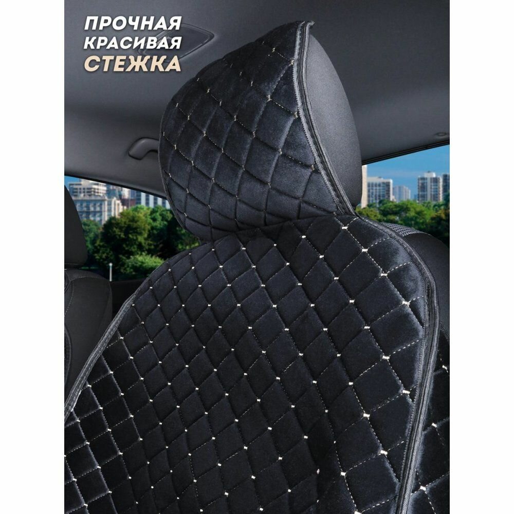 CarCape/ Накидки на сиденья автомобиля из велюра 2 шт. Коплект накидок на передние сиденья. Модель ISTANBUL+ с боками. Чёрный /белая строчка