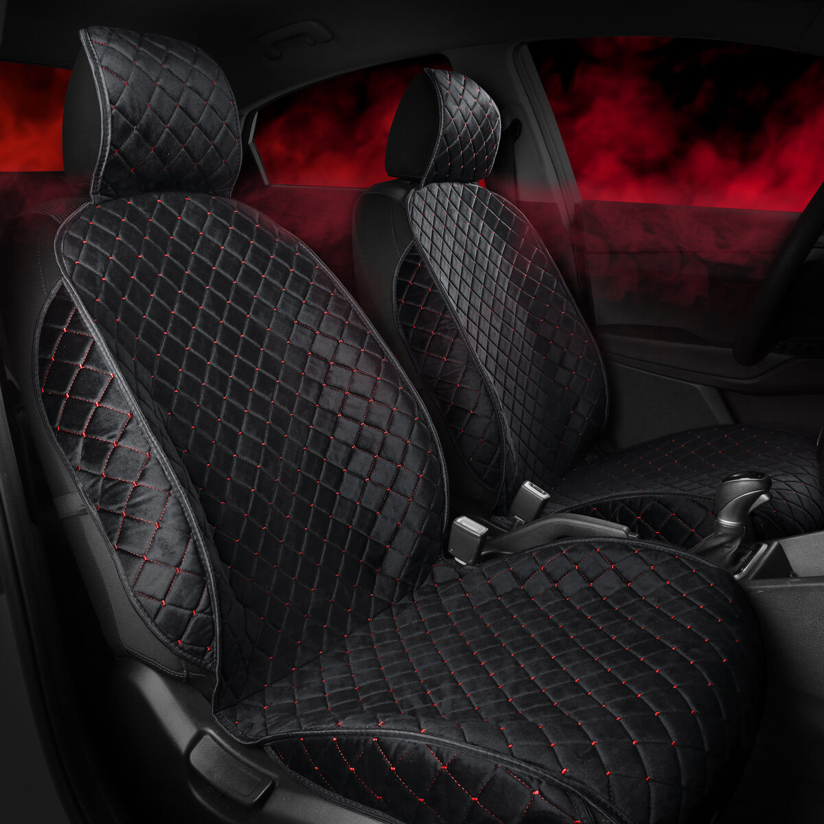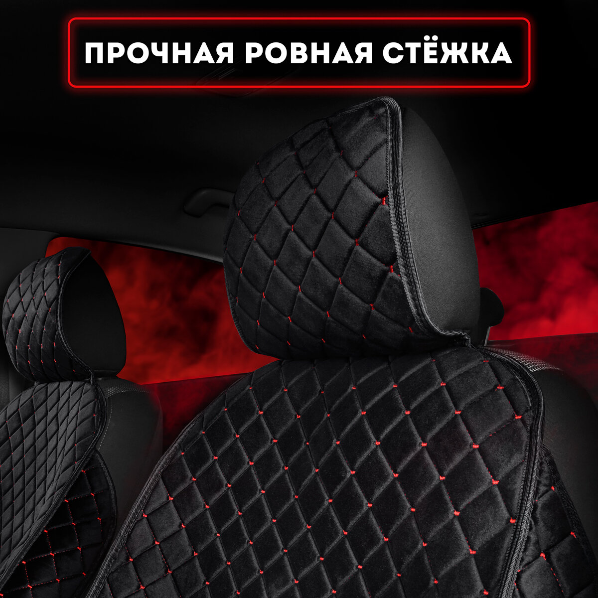 Купить Carcape/Накидки чехлы на весь салон автомобиля из велюра. Полный комплект накидок. Модель ISTANBUL+ PK. Чёрный, красная строчка
