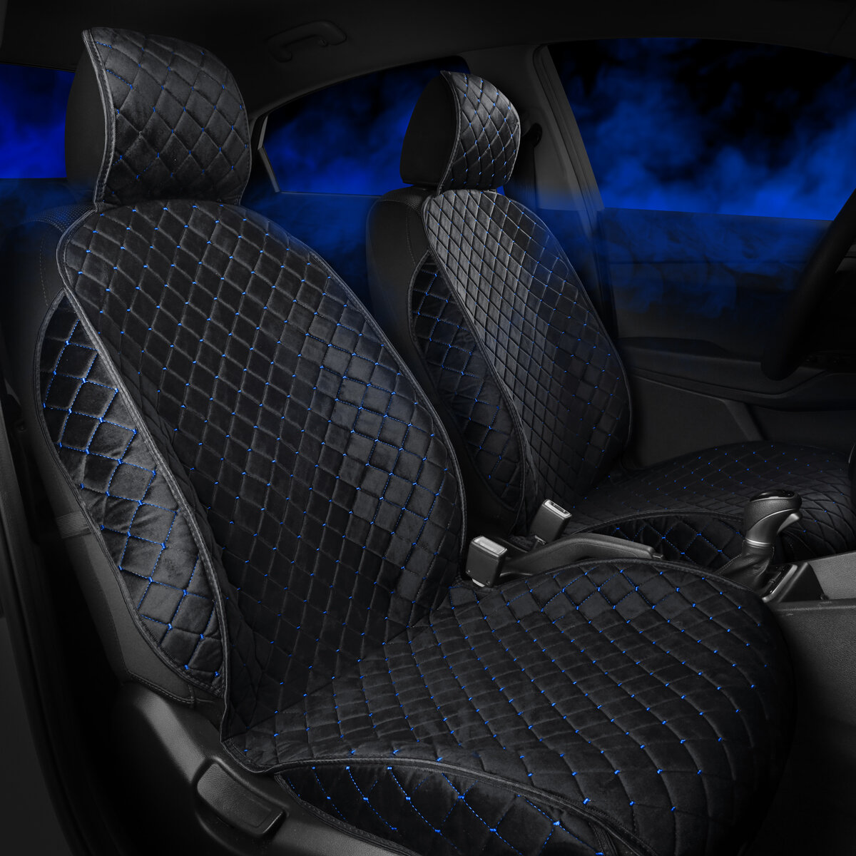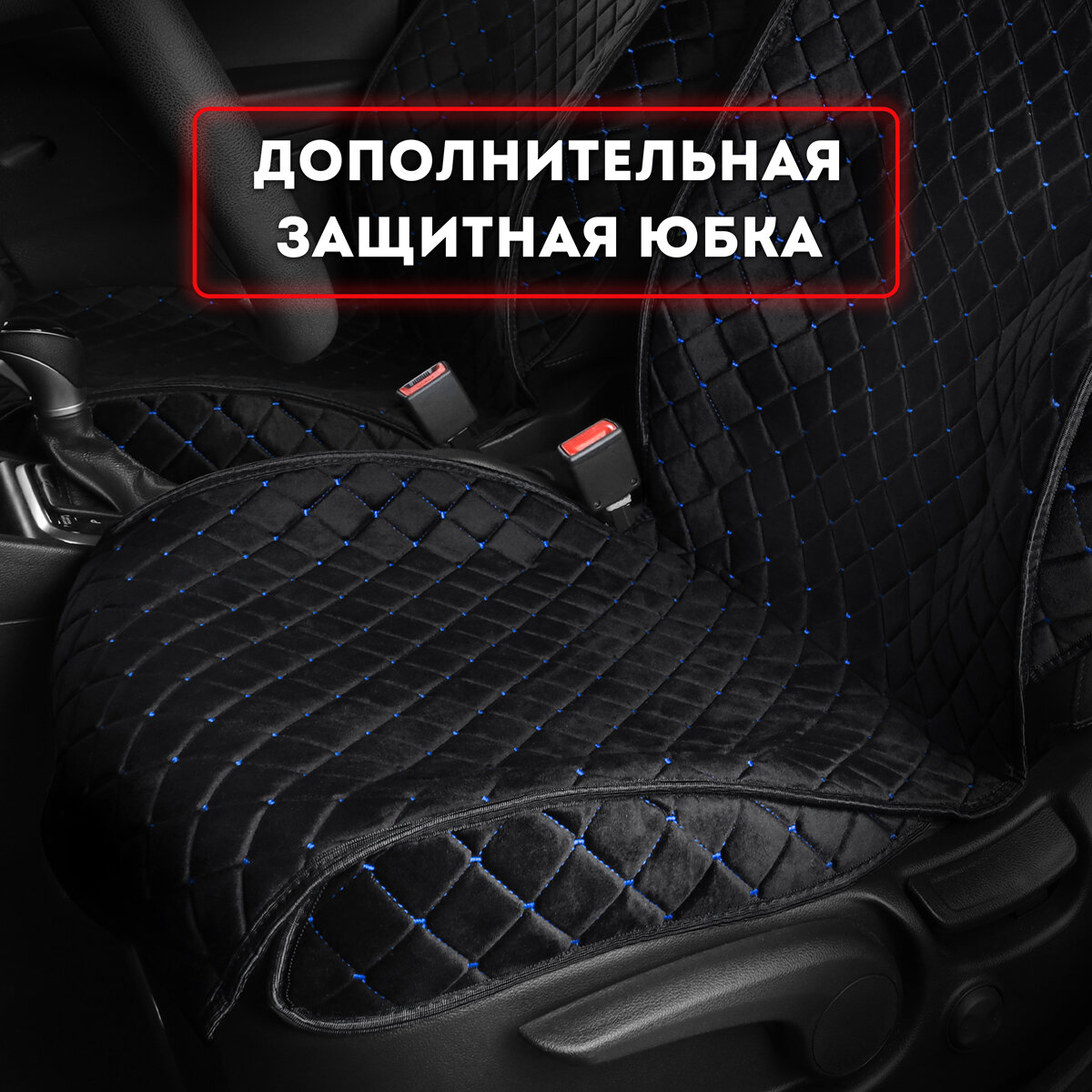 Купить Carcape/Накидки чехлы на весь салон автомобиля из велюра. Полный комплект накидок. Модель ISTANBUL+ PK. Чёрный, синяя строчка