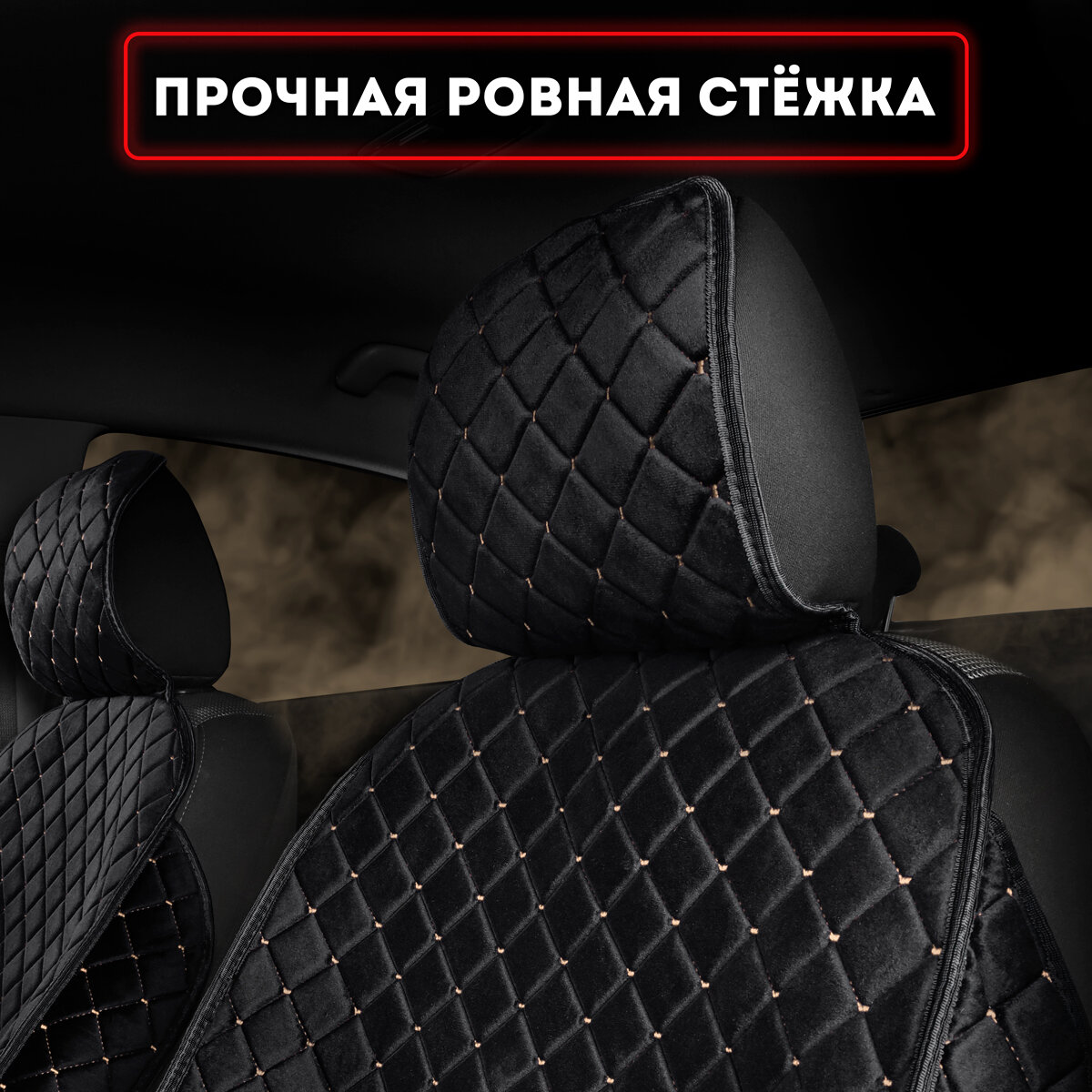 Carcape/Накидки чехлы на весь салон автомобиля из велюра. Полный комплект накидок. Модель ISTANBUL PK. Черный/ белая строчка