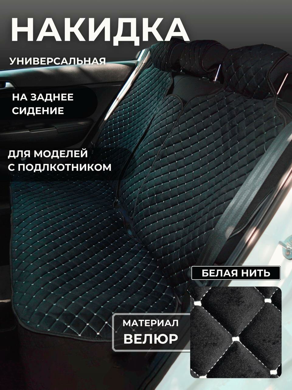Универсальные чехлы накидки на заднее сиденье автомобиля из велюра 2шт. Чёрная строчка