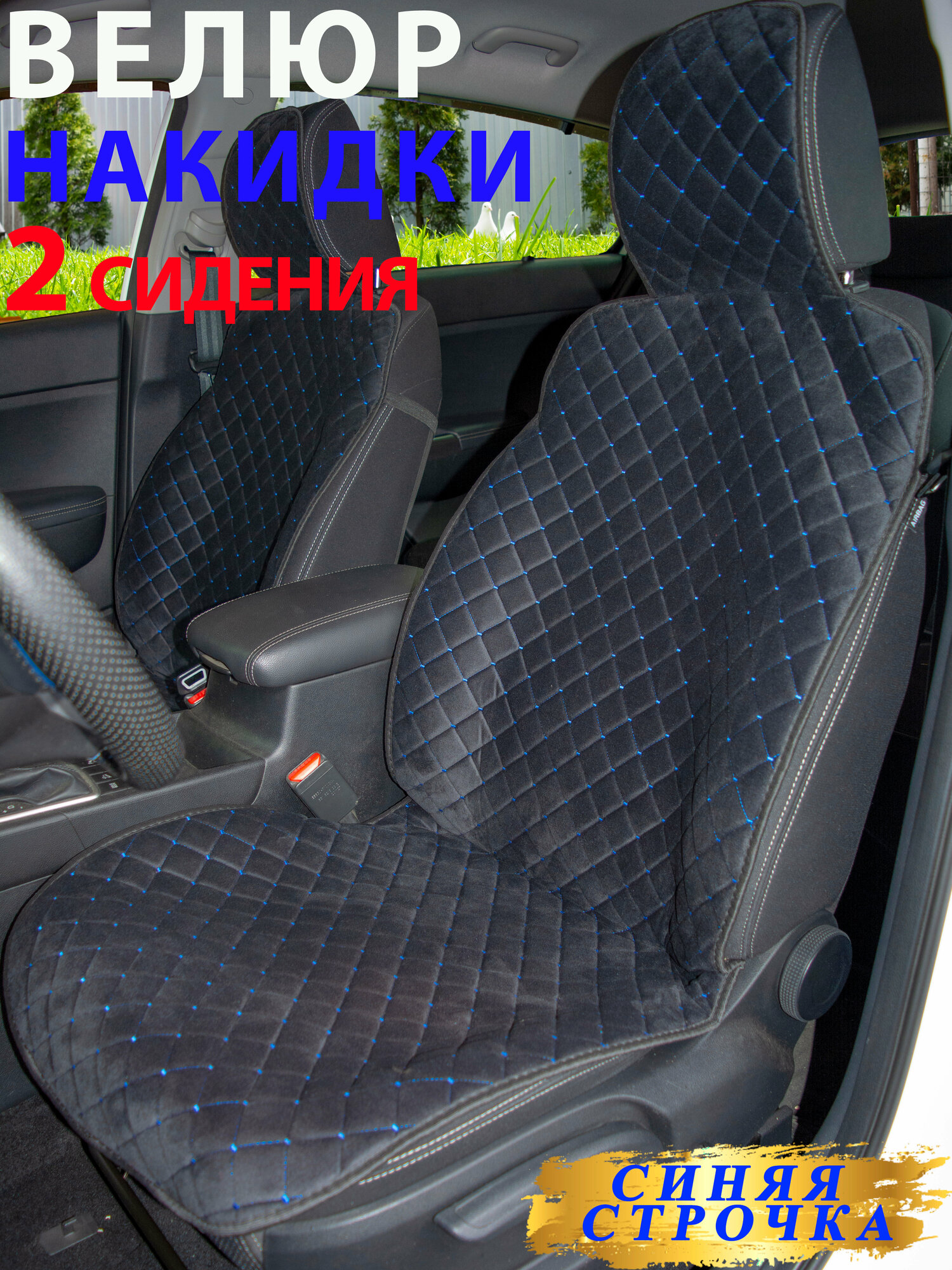 СохранитьУниверсальные чехлы накидки на передние сидения из велюра 2шт. Черный /синяя строчка интересное: