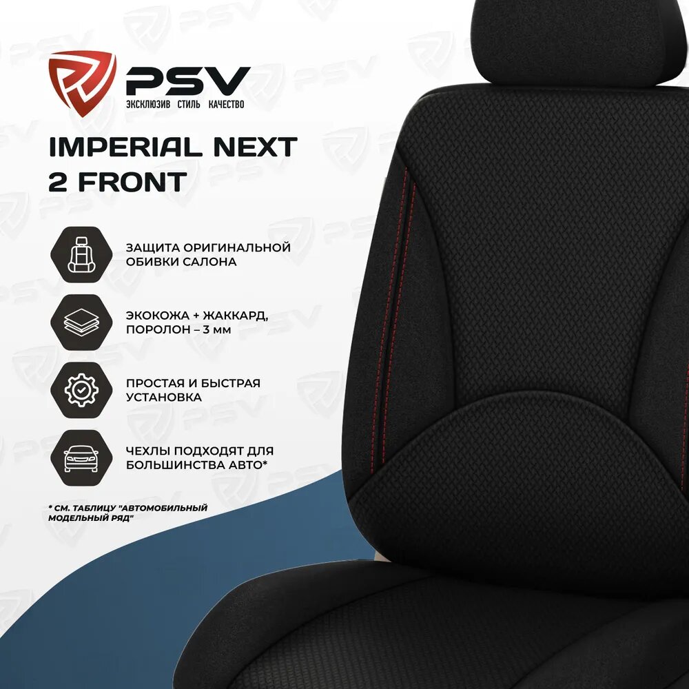 Купить Чехлы PSV Imperial Next JP-11/18 передние экокожа/жаккард красная отстрочка черные