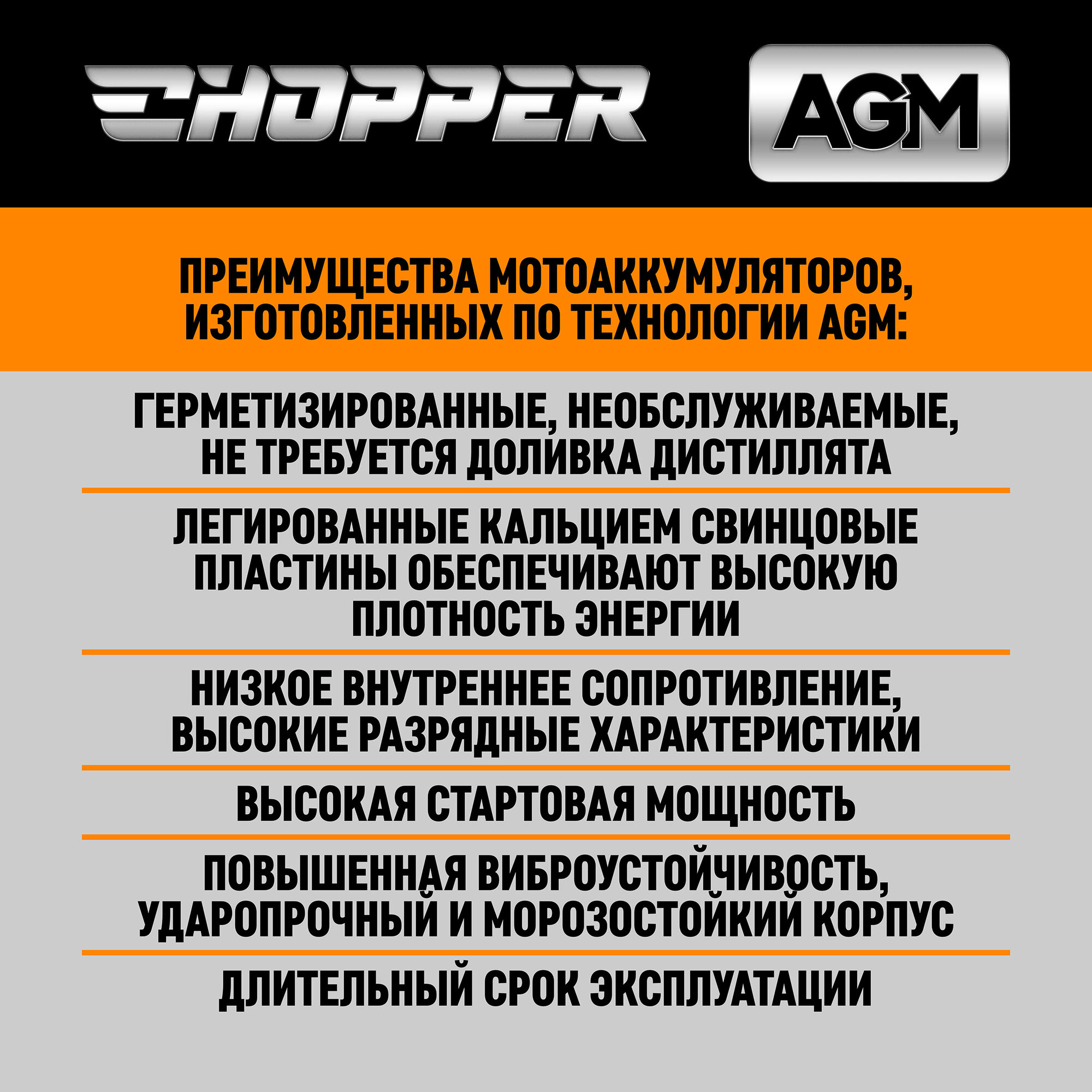 Мото Аккумулятор CHOPPER AGM 12В 7 Ач (СТ1207, YTX7A-BS) для мотоцикла, мопеда, скутера 12V 7Ah