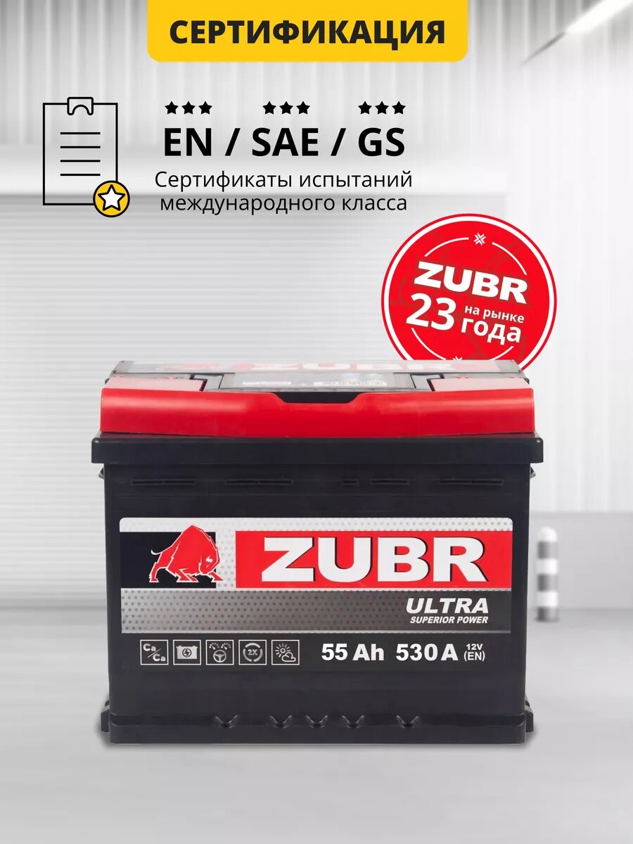 Аккумулятор автомобильный ZUBR Ultra 55 Ah 530 A обратная полярность 242x175x190 интересное: