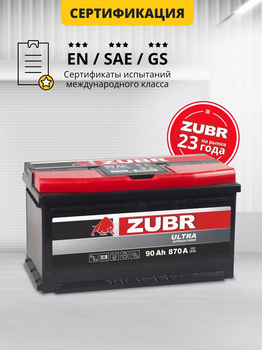 Аккумулятор автомобильный ZUBR Ultra 90 Ah 870 A прямая полярность 353x175x190 интересное: