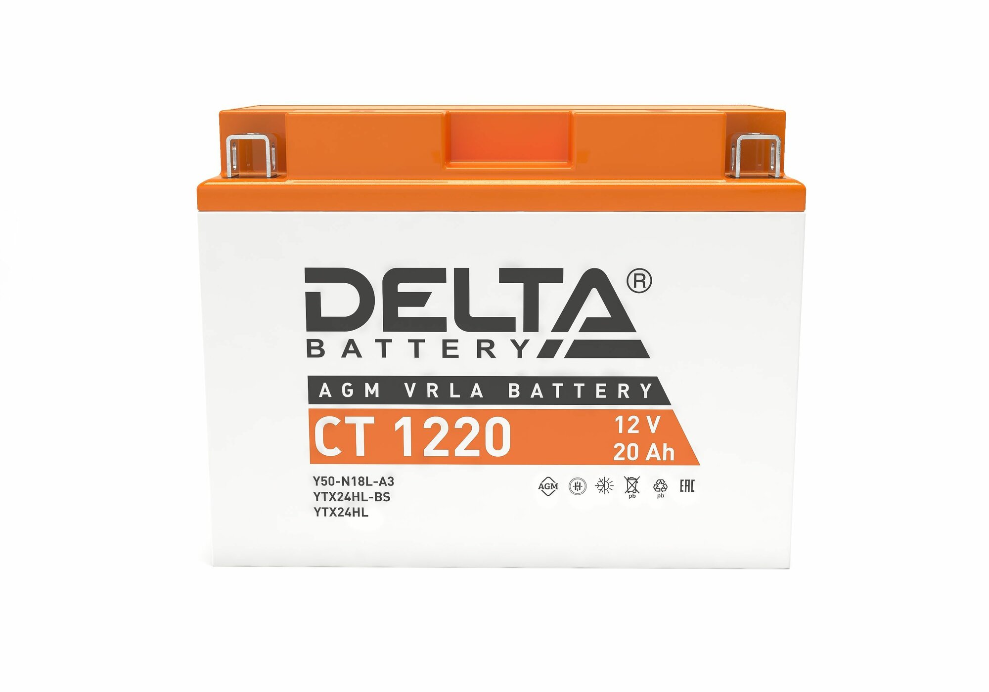 Купить Мото аккумулятор стартерный Delta CT 1220 12В 20Ач обратная полярность 250А (12V 20Ah) (Y50-N18L-A3; YTX24HL-BS; YTX24HL) AGM, аккумулятор для мотоцикла, квадроцикла, снегохода, дизельных генераторов