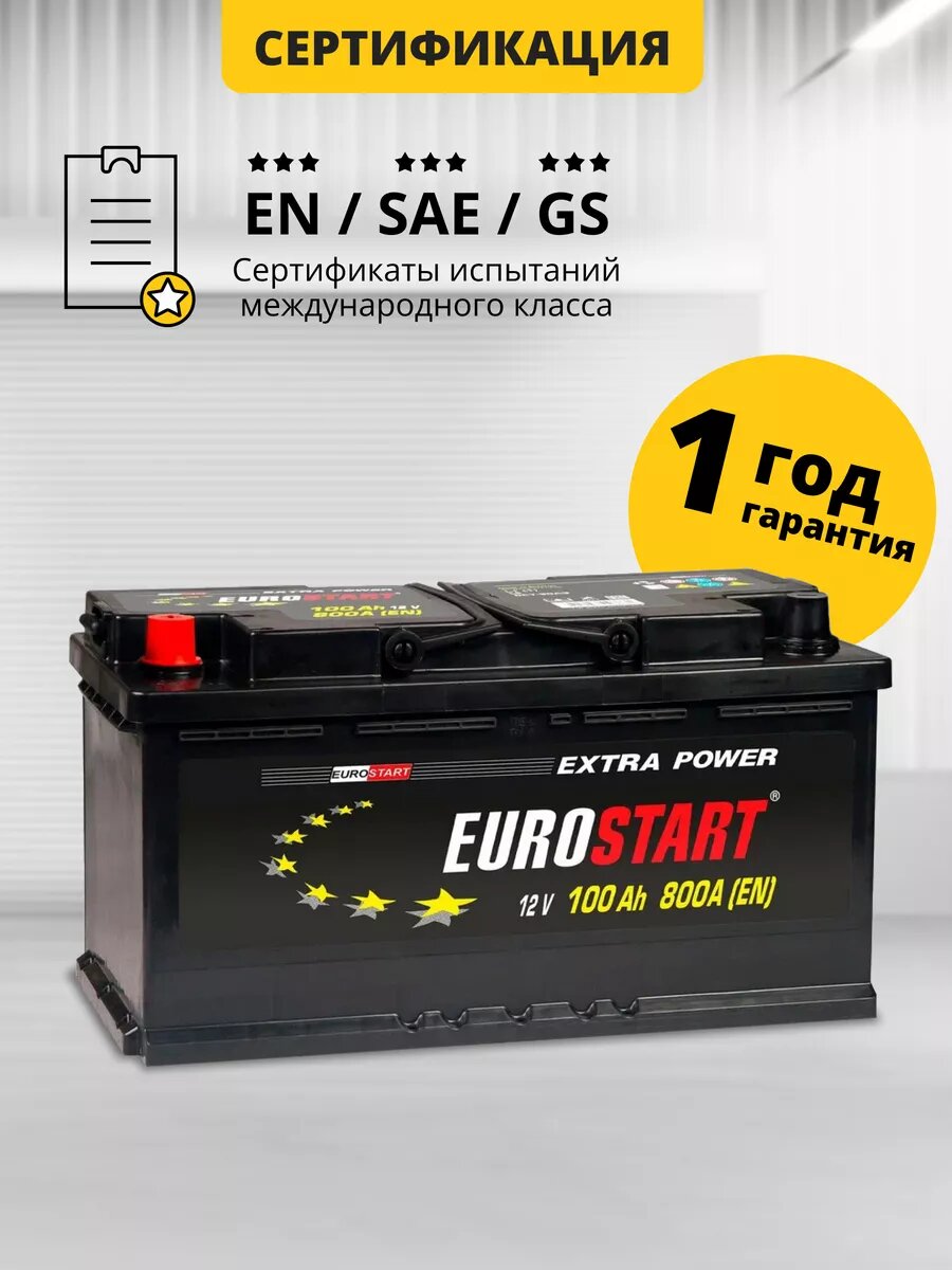Аккумулятор автомобильный EUROSTART Extra Power 100 Ah 800 A обратная полярность 353x175x190