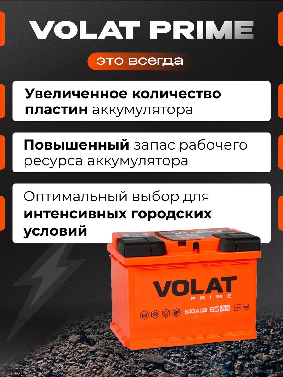Купить Аккумулятор автомобильный VOLAT Prime (низкий) 65 Ah 640 A обратная полярность 242x175x175