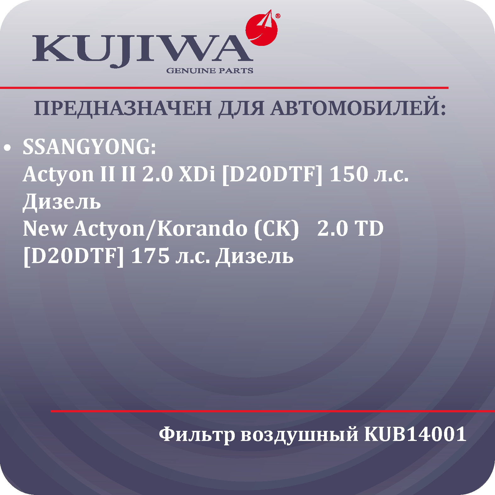 Купить Фильтр воздушный KUB14001 KUJIWA для SsangYong Actyon New , SsangYong Korando