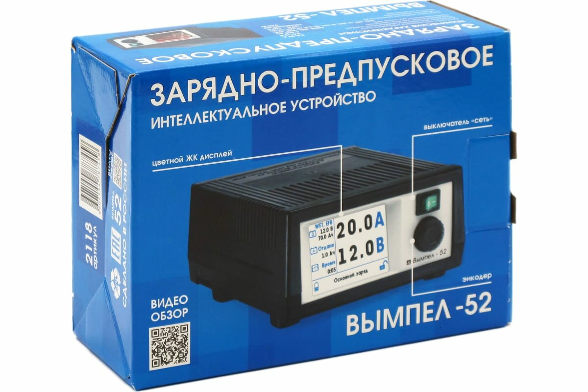 Зарядно-предпусковое интеллектуальное устройство Вымпел-52 (библиотека АКБ+доп.настройки, 0,5-20А, 0,5-18В, цв.экран)