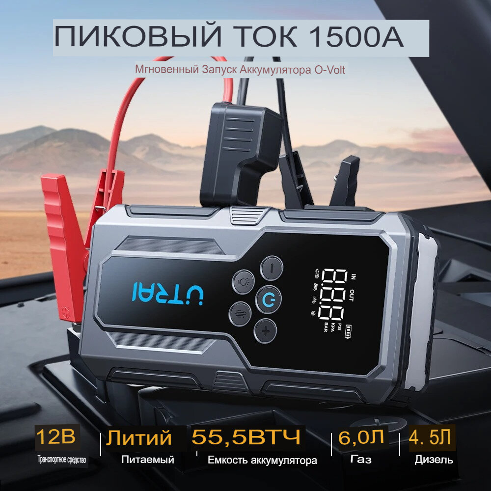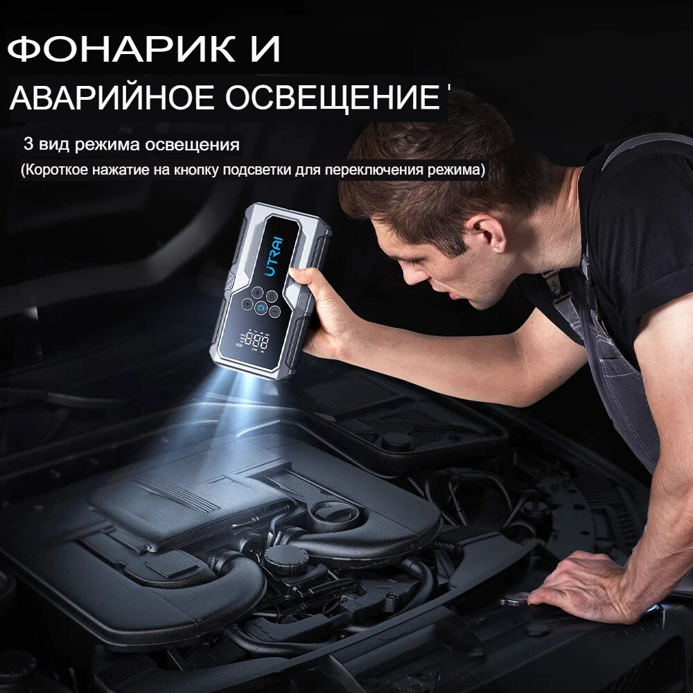 Пусковое устройство бустер Utrai с компрессором 16000mAh 2000A Портативное автономное пуско-зарядное устройство для автомобиля.. Powerbank. Buster
