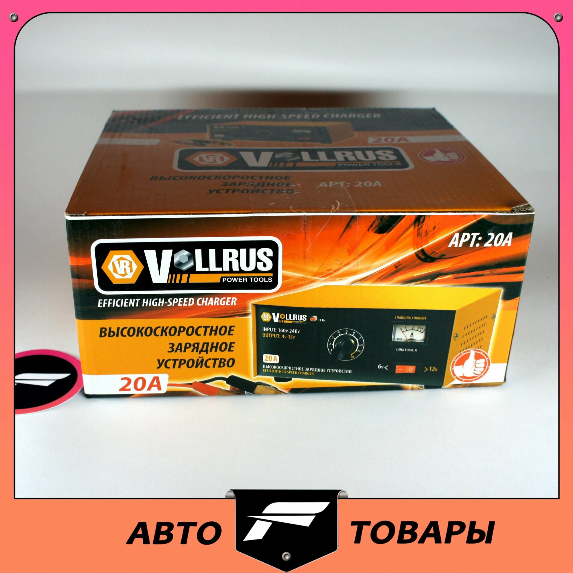 Купить Зарядное устройство для АКБ VOLLRUS 20A, 6/12В, с индикатором силы тока, и регулировкой