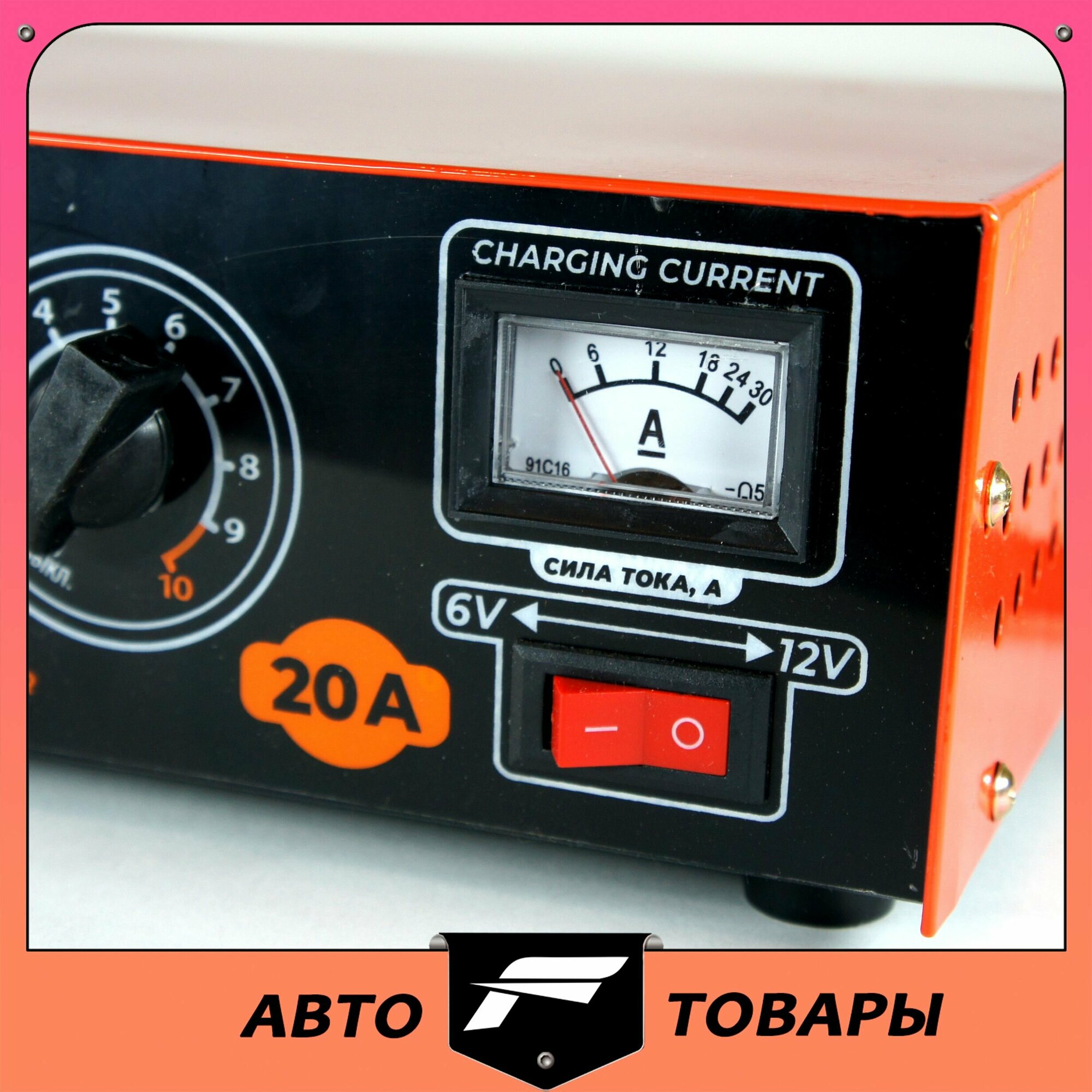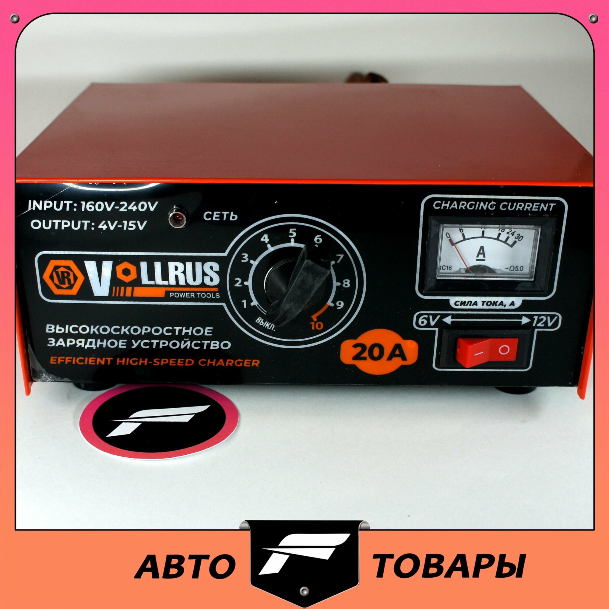 Зарядное устройство для АКБ VOLLRUS 20A, 6/12В, с индикатором силы тока, и регулировкой интересное:
