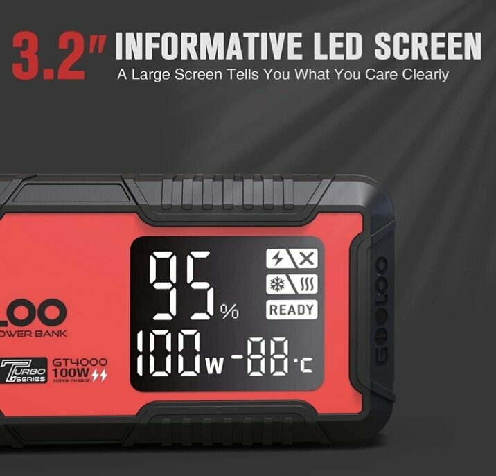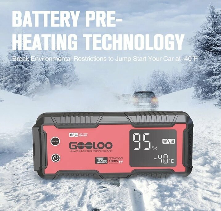 Пусковое портативное устройство бустер Gooloo c подогревом батареи 26800mAh 4000A Jump starter. Powerbank. Buster.