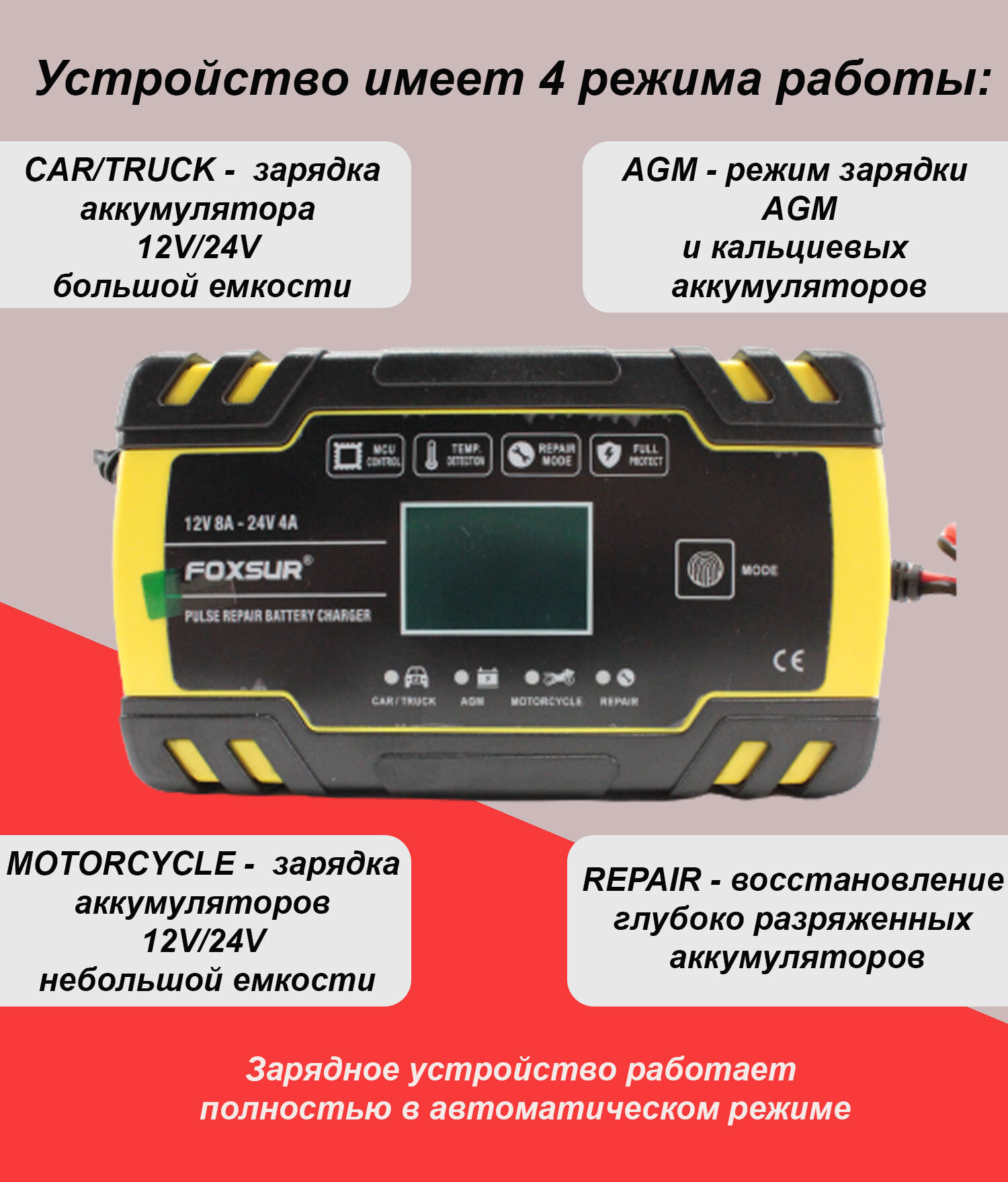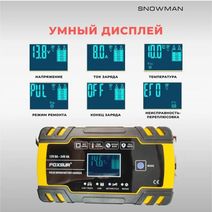 FOXSUR Зарядное устройство для автомобильного аккумулятора, зарядка АКБ автоматическая 12-24V интересное: