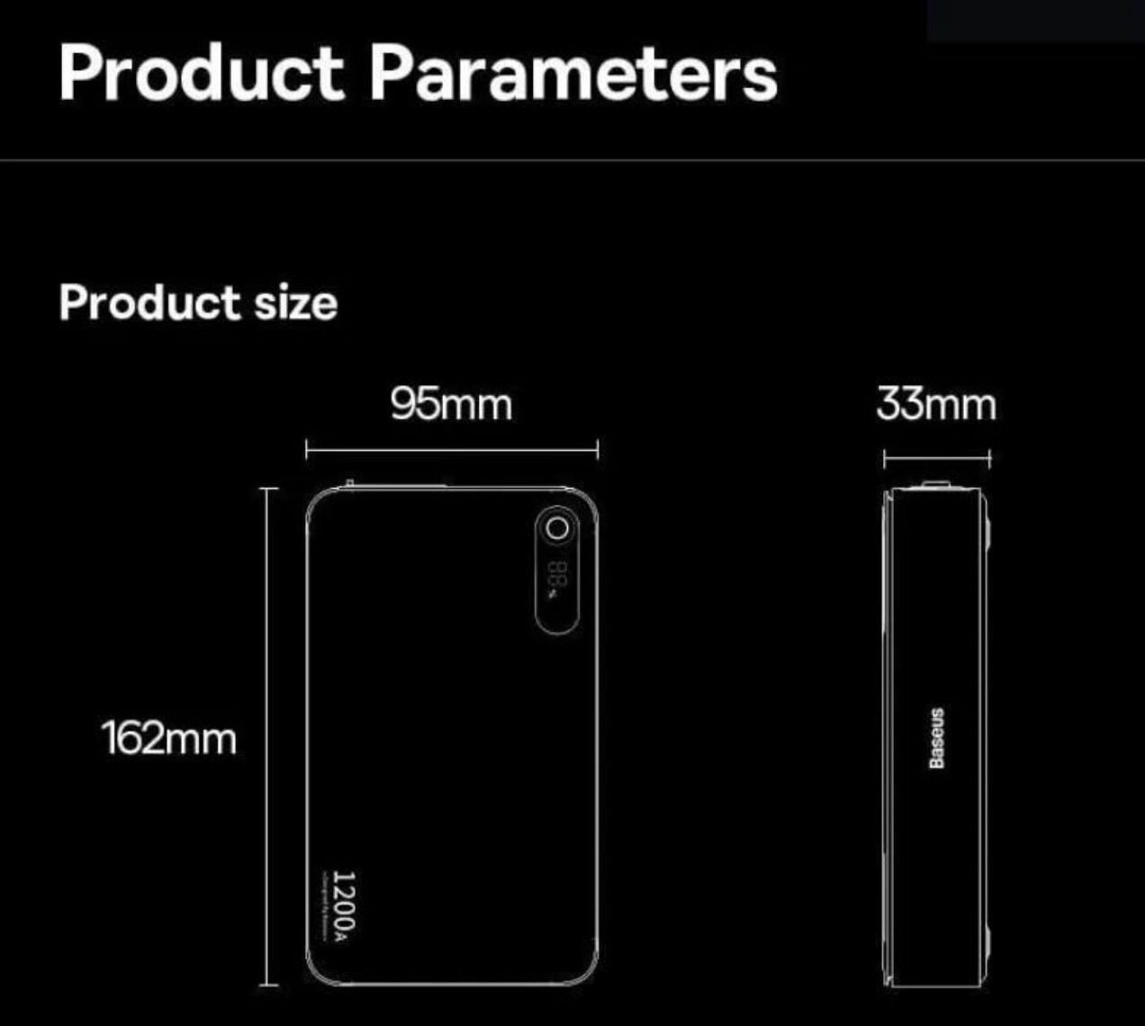 Автомобильное пусковое портативное устройство, бустер BASEUS 12000мАч 1200A.