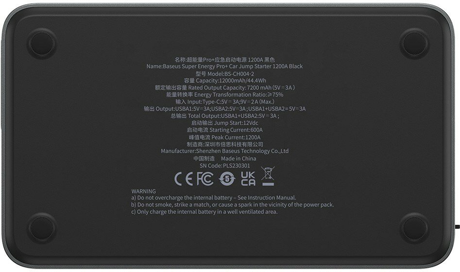 Автомобильное пусковое портативное устройство, бустер BASEUS 12000 мАч 1200A
