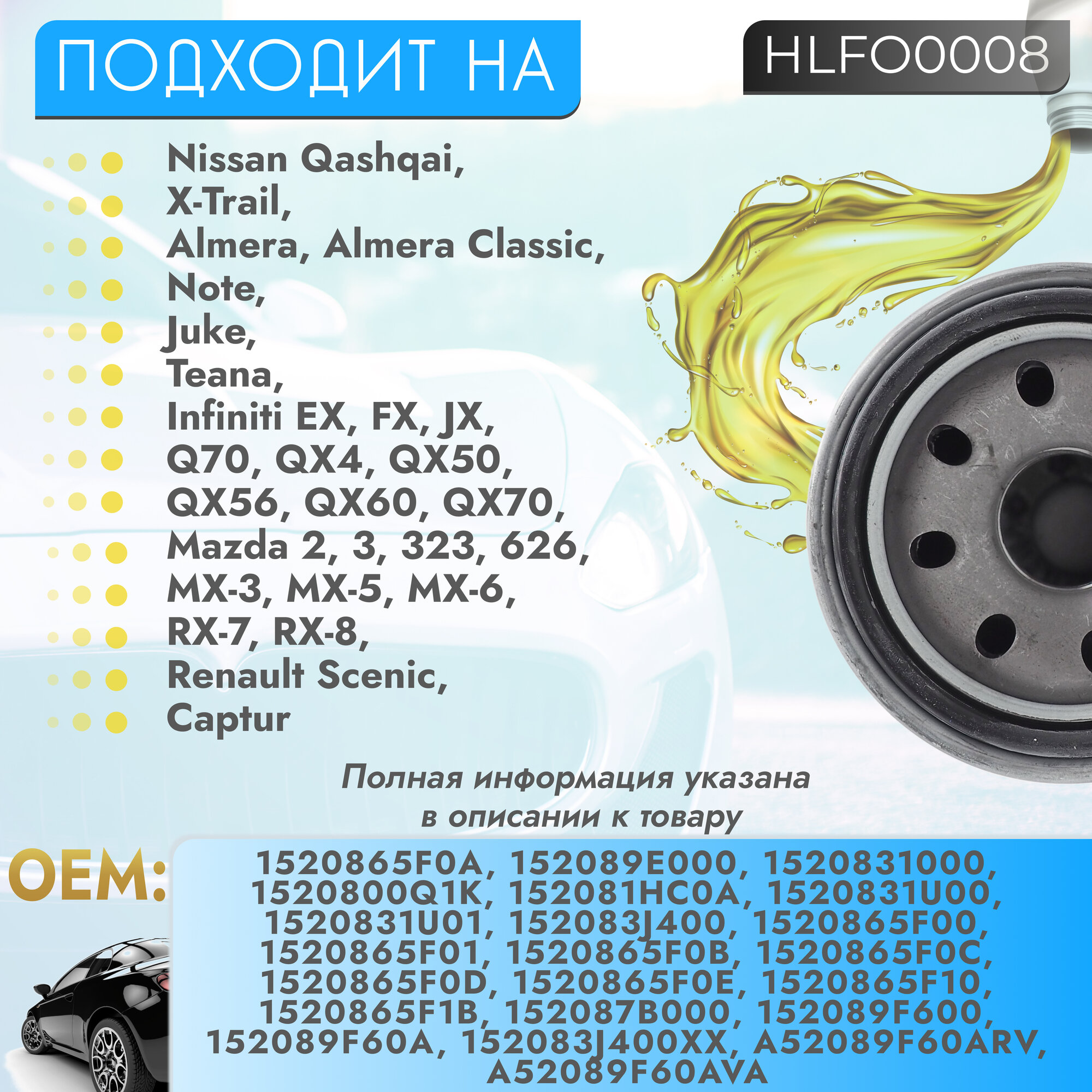 Масляный фильтр для аавтомобиля Nissan Qashqai (J10, J11) 07-, X-Trail (T30-T32) 01-, Almera (N15, N16) 96-, Note (E11, E12) 06-, Juke (F15) 10- интересное: