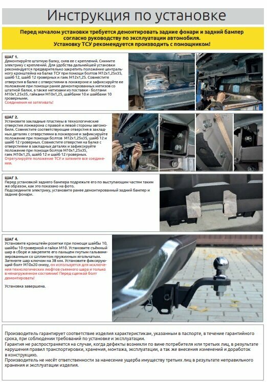 | Подробная комплектация | Фаркоп, электрика с блоком согласования, смазка для шара |