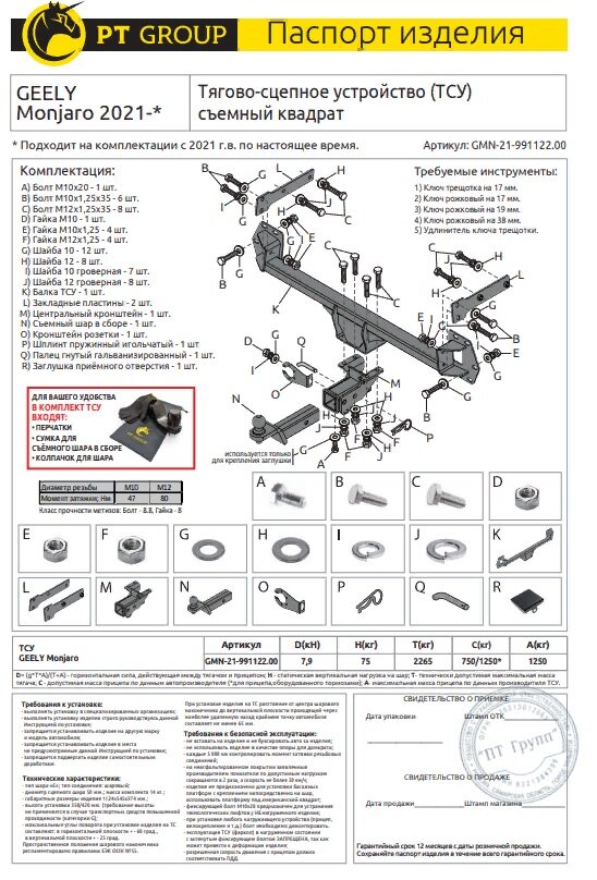 Фаркоп ТСУ PT Group, для Geely Monjaro 2021-, съемный квадрат, электрика с блоком и розеткой в комплекте интересное: