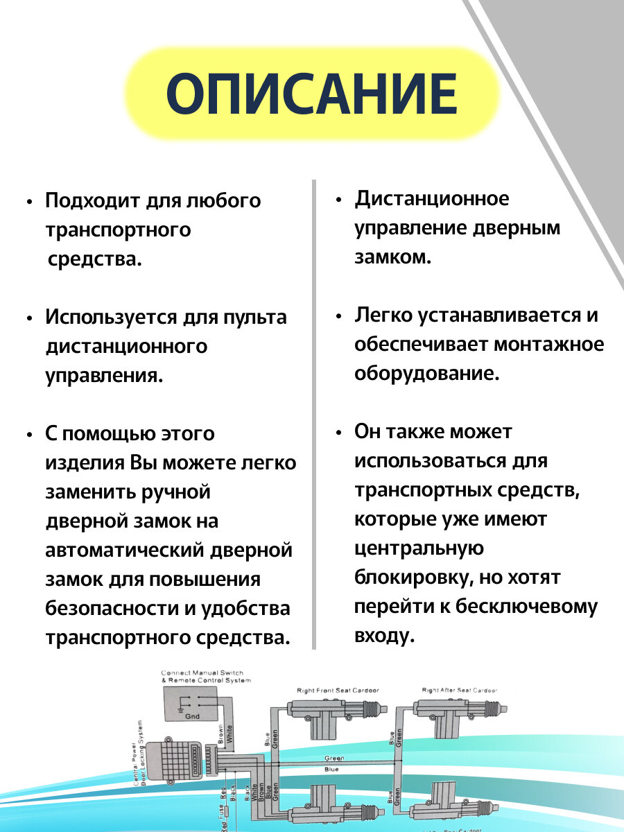 Ниже Вы можете прочитать отзывы на Автомобильный центральный замок, бесключевая система блокировки дверей с 4 приводами для дверного замка, 12 В, ознакомится с подробными характеристиками, посмотреть интересные обзоры и фотографии на Автомобильный центральный замок, бесключевая система блокировки дверей с 4 приводами для дверного замка, 12 В.