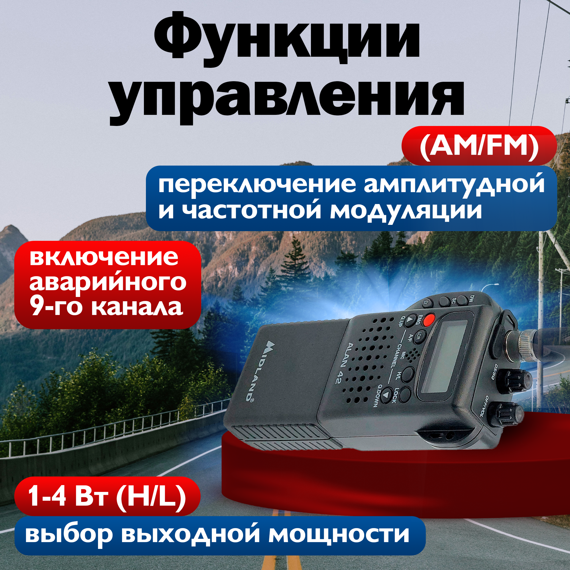 Рация Midland Alan 42, для автомобиля 27МГц, 4Вт, 80 каналов, AM/FM, CB. интересное: