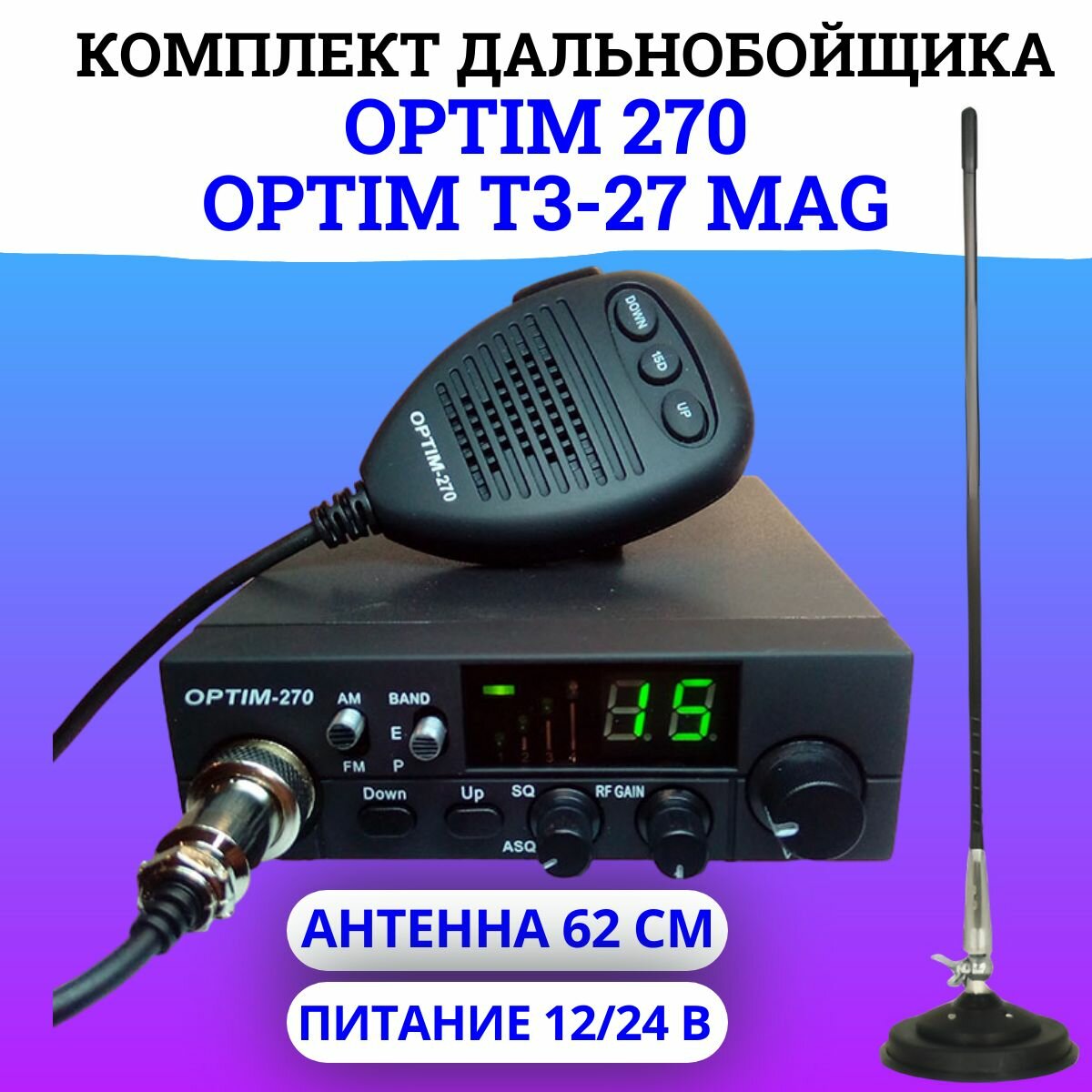 Комплект: Радиостанция автомобильная Optim 270+магнитная антенна 62 см интересное: