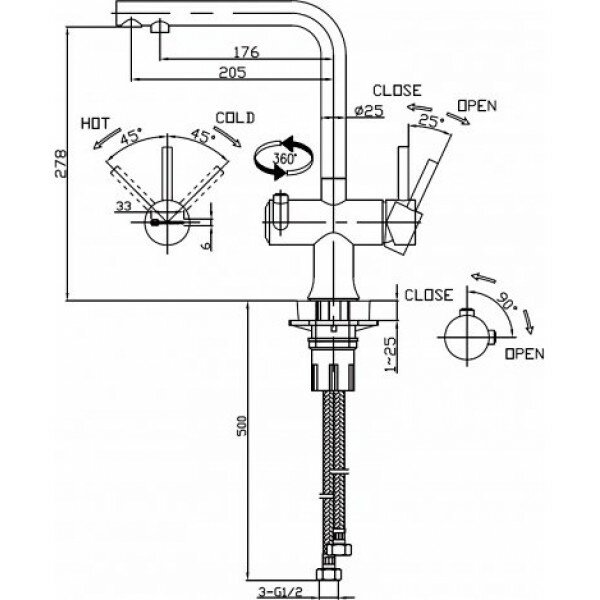 Смеситель для кухни OMOIKIRI Hotaru (4994051) с подключением к фильтру