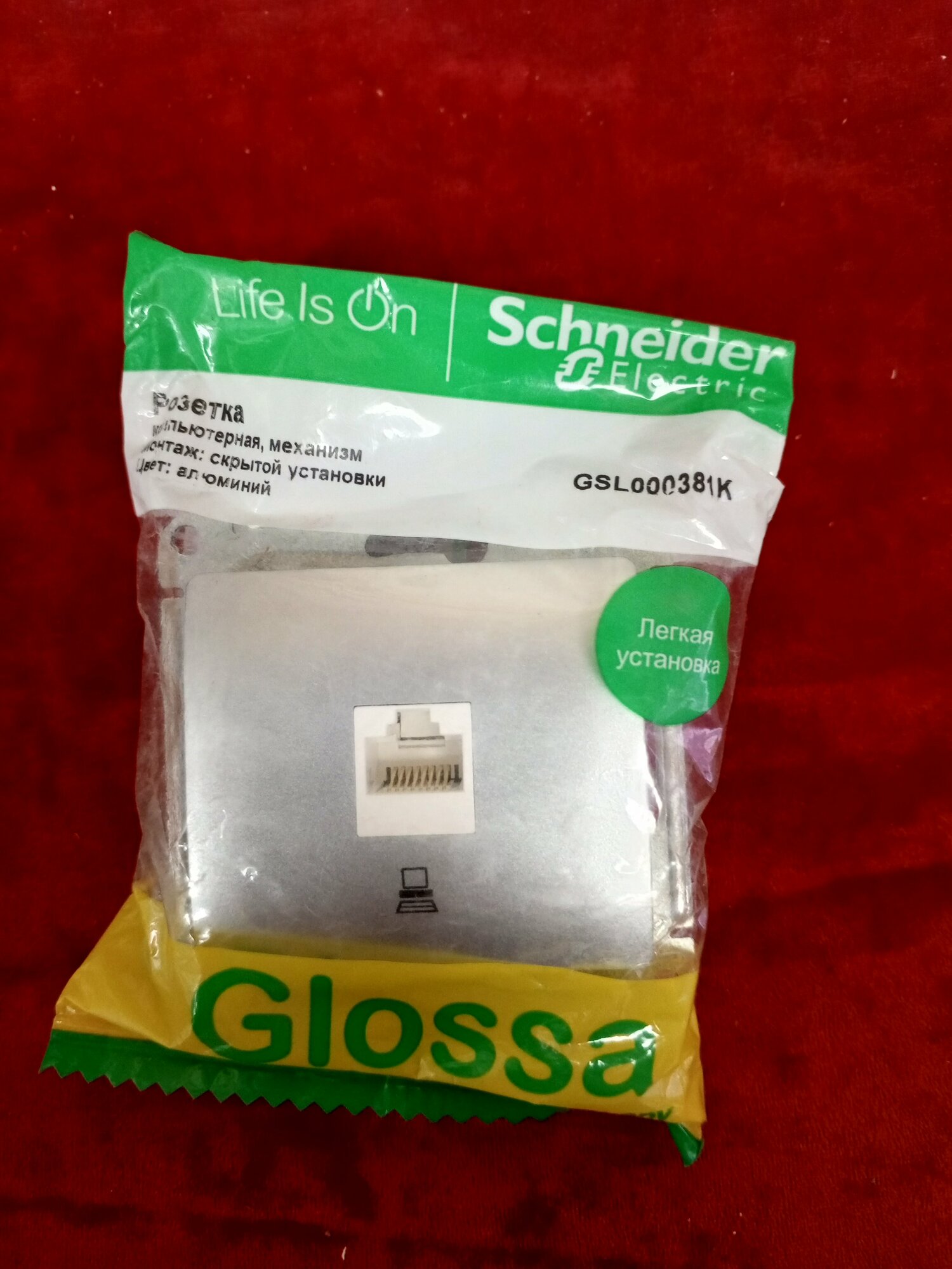 СохранитьGLOSSA Розетка компьютерная RJ45 категория 5е в рамку алюминий | код GSL000381K | Schneider Electric ( 1шт. ) интересное: