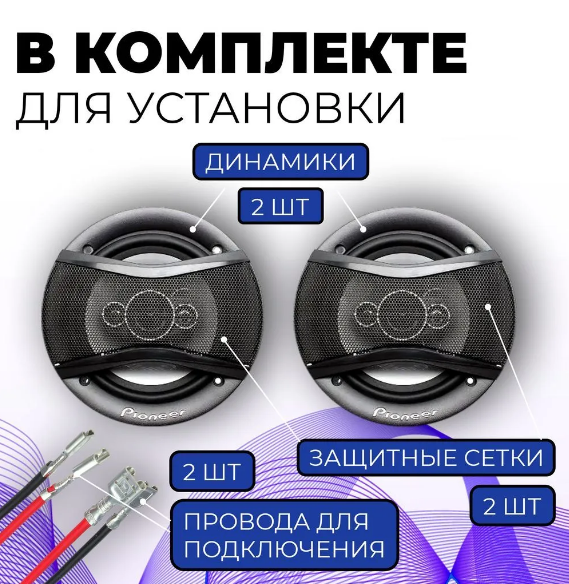 | Комплектация | Динамики 2 шт. · Защитные сетки 2 шт. · Провода для подключения · Саморезы для акустики 8 ш |