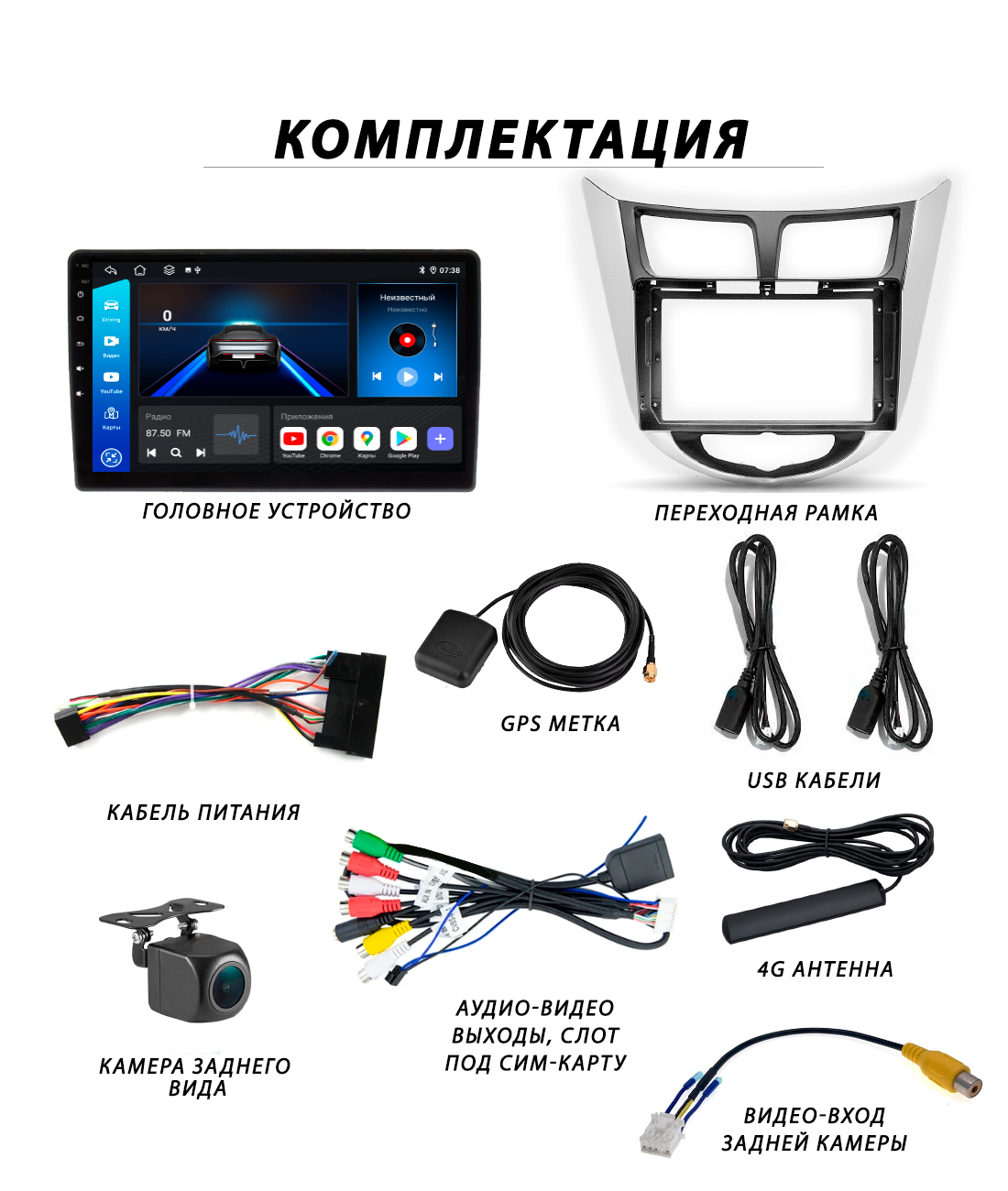 Магнитола Hyundai Solaris 1 (2010-2017) 4Гб+64Гб/серебристо-черная/DSP/Android/Carplay/кулер/Wi-Fi/Bluetooth