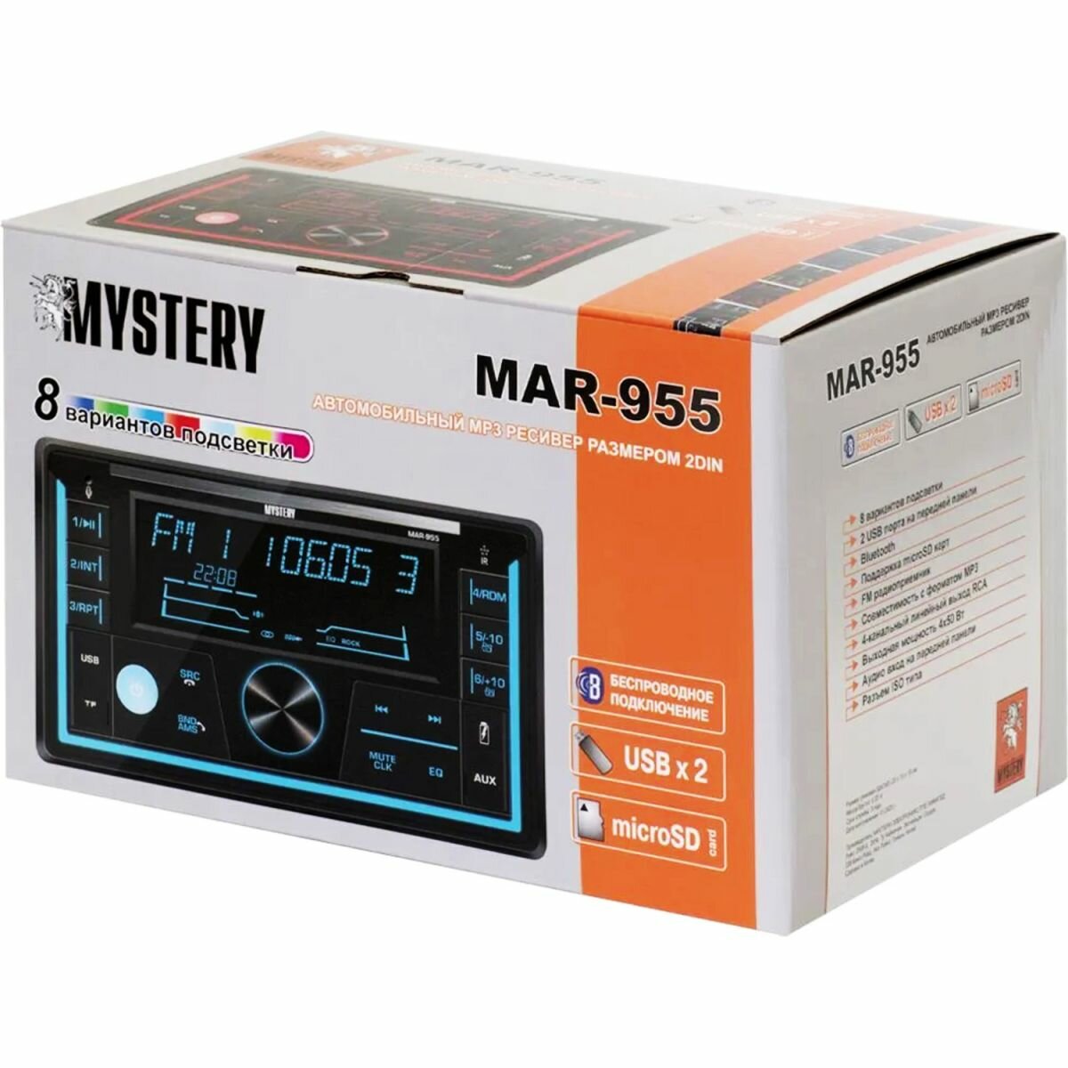Автомобильная магнитола MYSTERY MAR-955 2DIN, Bluetooth, USB, AUX, мультицветная подсветка интересное: