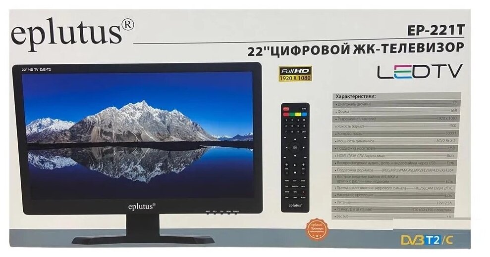 Цветной телевизор с цифровым тюнером 22 дюйма (55.8 см) цветной TFT ЖК Eplutus Mod: EP-221Т (Y10145LET) HDMI / VGA / USB - 1920x1080 HD