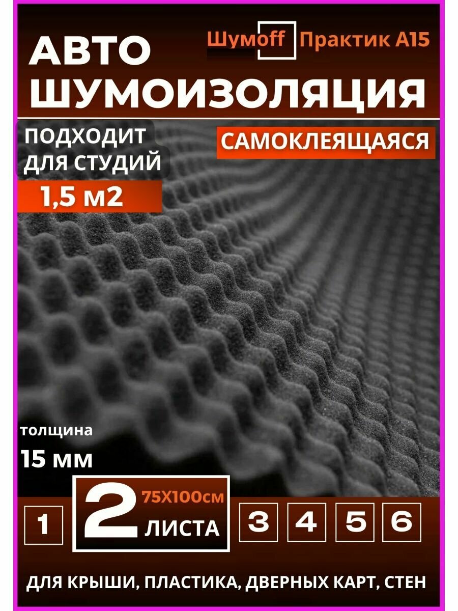 СохранитьАкустический поролон Шумофф Практик А15 - 2 листа. Шумоизоляция для автомобиля волна Шумоff Practik 15 мм, шумка в авто, шумоизоляция дверей, крыши авто, шумка в машину, звукоизоляция авто интересное: