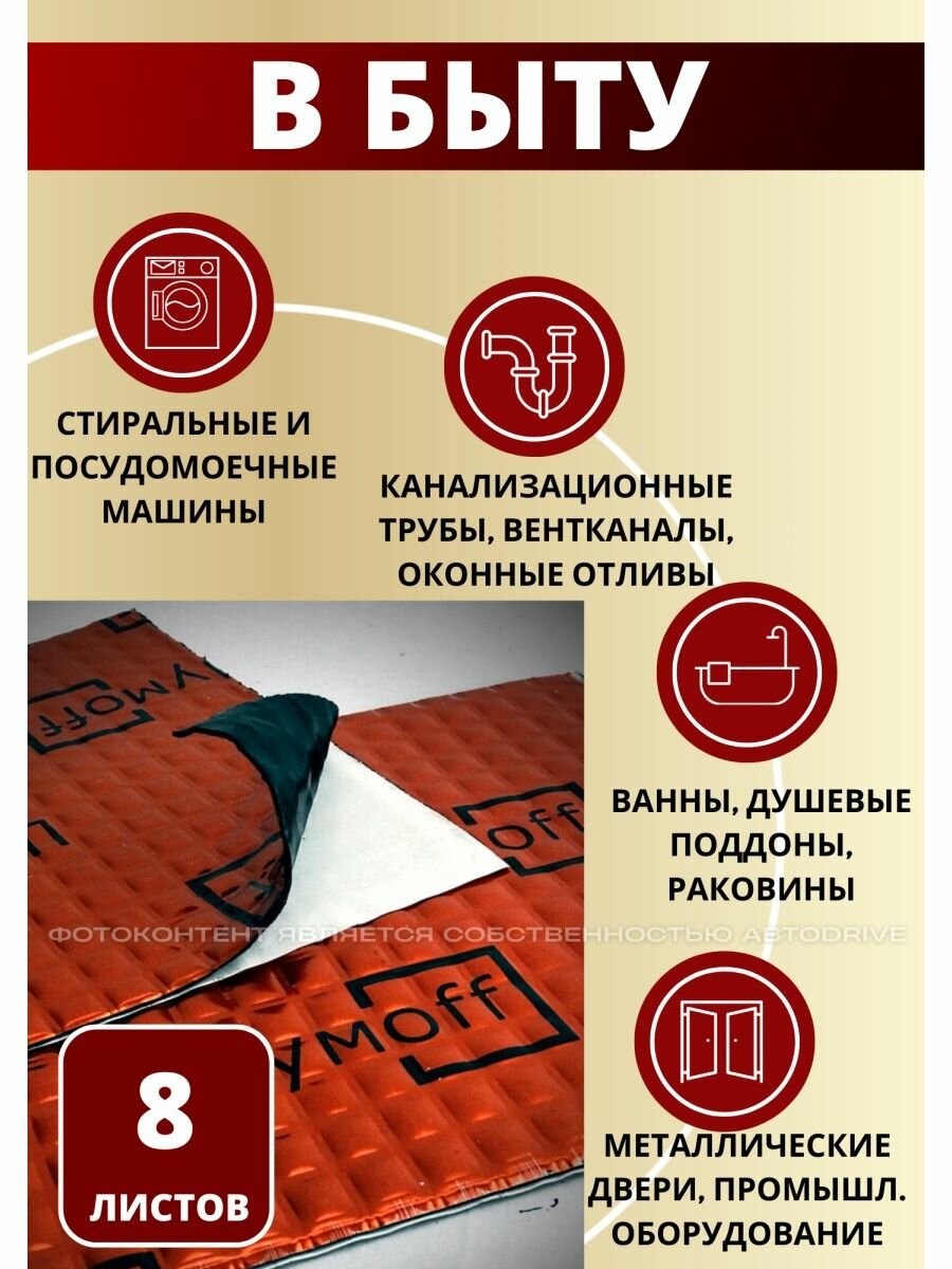 Виброизоляция Шумофф М4, 4 мм. - 8 листов. Шумоизоляция для автомобиля, шумка в авто, вибропласт, вибродемпфер. Шумоизоляция арок, пола, багажника, канализационных труб, стояка, ванны, раковины