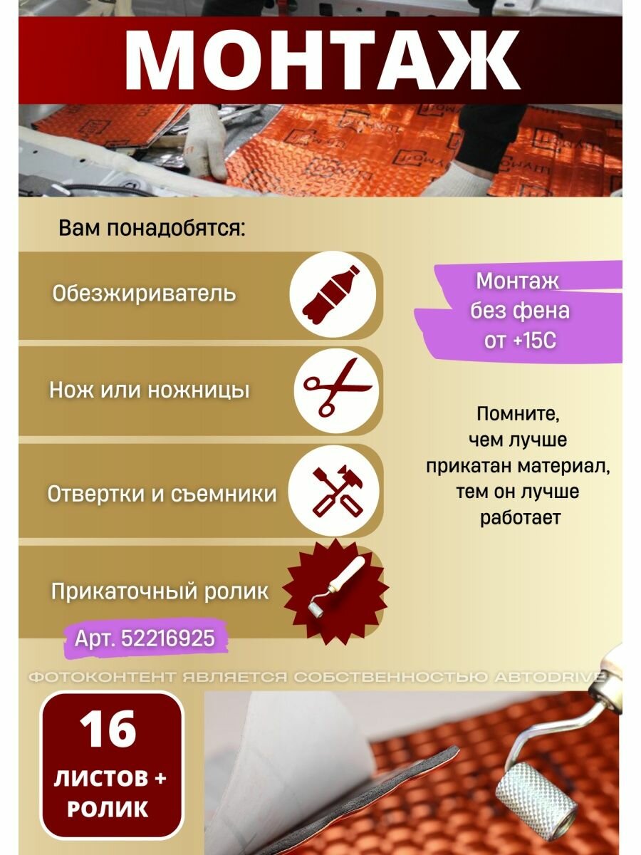 СохранитьШумоизоляция для автомобиля Шумофф М3 - 16 листов + ролик прикаточный. Виброизоляция авто, вибропласт, вибродемпфер, шумка в машину. Шумоизоляция для дверей, крыши, потолка, капота, арок, пола, багажника. Звукоизоляция в авто 3 мм. интересное: