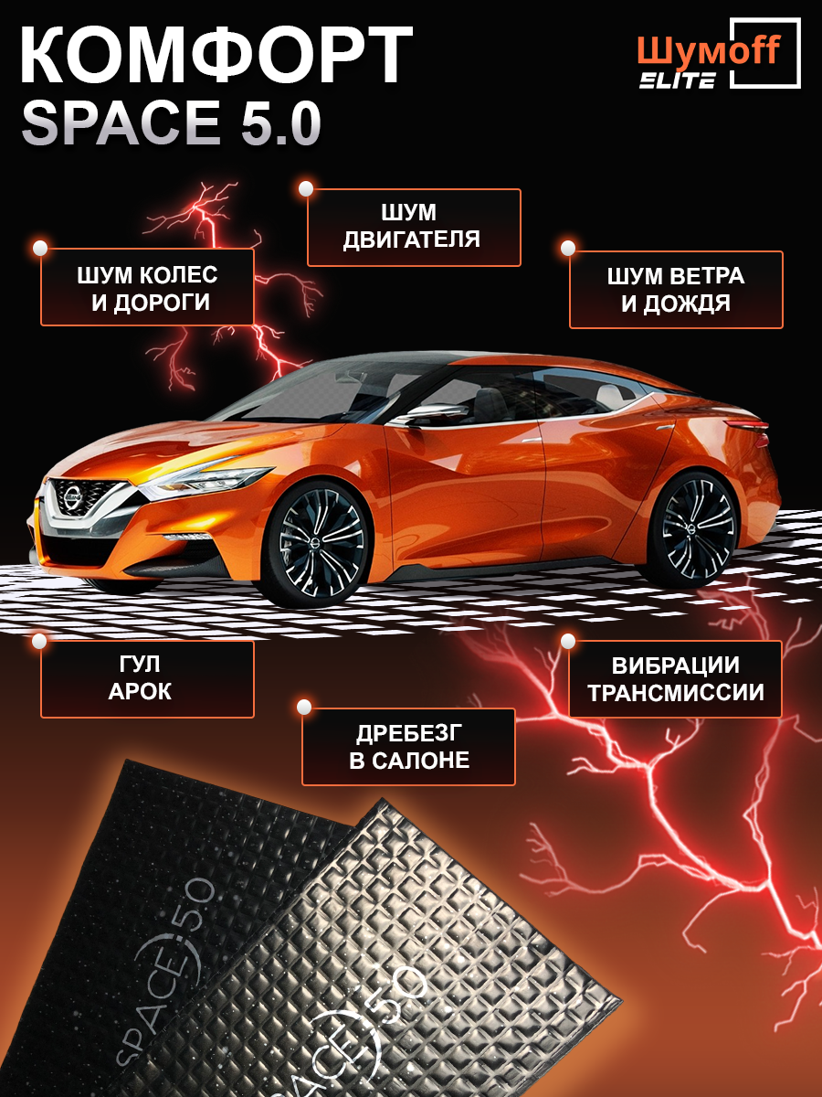 Купить Виброизоляция авто Шумофф Спейс 5,0 - 10 листов. Шумоизоляция для автомобиля Шумоff Space 5 мм, шумка в авто, вибропласт, вибродемпфер. Шумоизоляция для дверей, крыши, потолка, арок, пола, багажника, канализационных труб, стояка, ванны, раковины