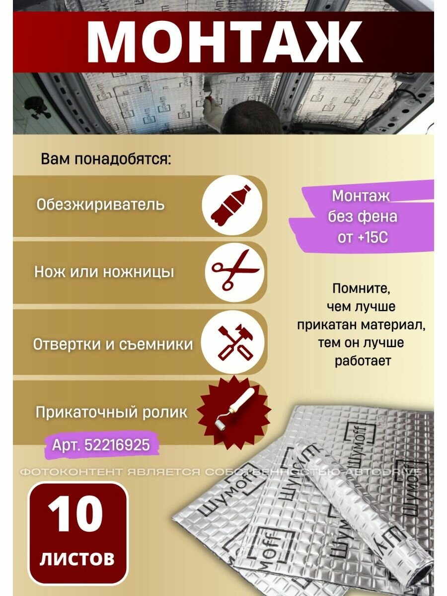 Шумоизоляция для автомобиля Шумофф М3 - 16 листов + ролик прикаточный. Виброизоляция авто, вибропласт, вибродемпфер, шумка в машину. Шумоизоляция для дверей, крыши, потолка, капота, арок, пола, багажника. Звукоизоляция в авто 3 мм.