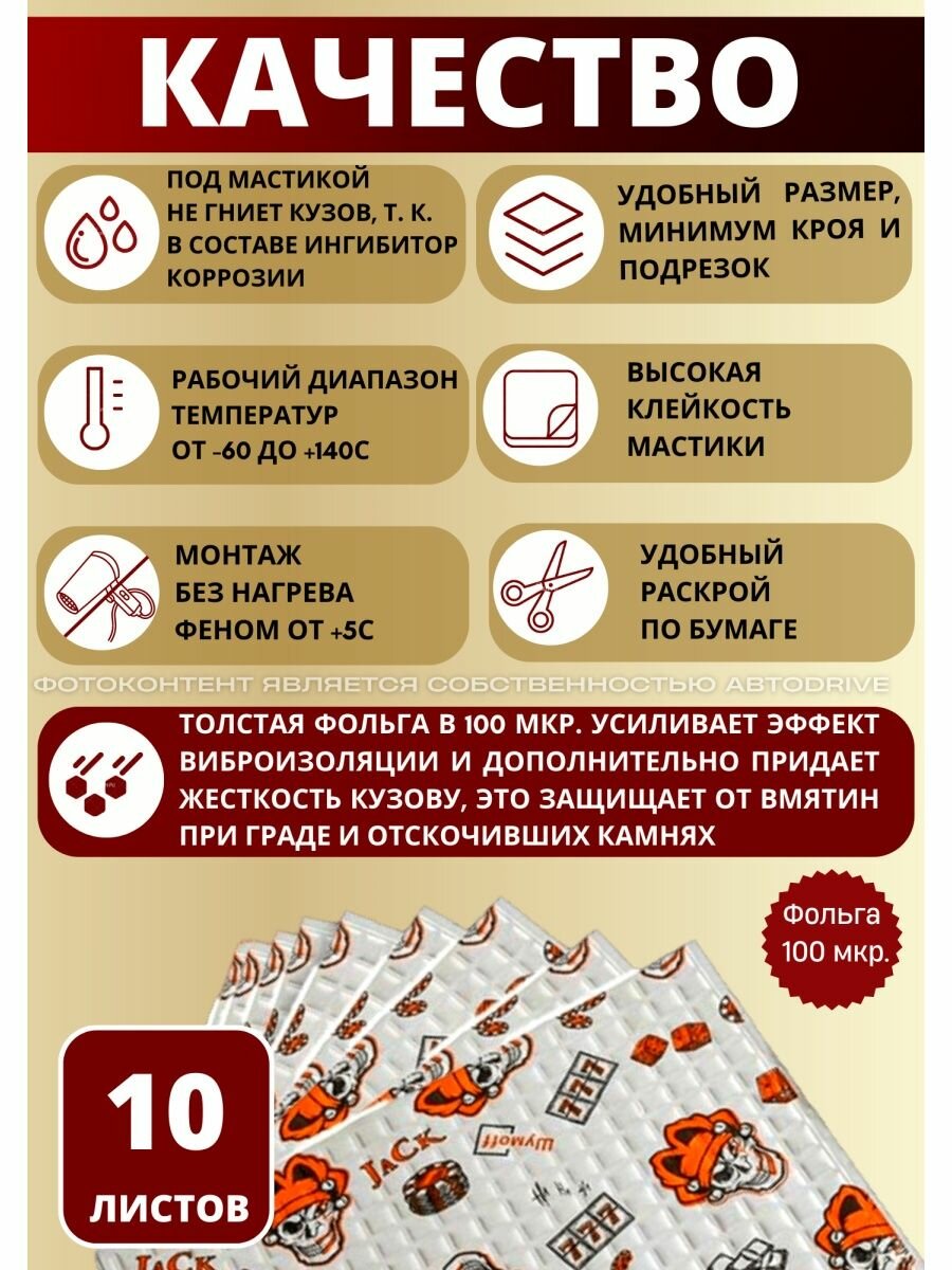 Шумоизоляция для автомобиля Джек 4 листа. Толщина 2 мм = 3 мм. Виброизоляция авто, вибропласт, вибродемпфер, шумка в машину. Шумоизоляция для дверей, крыши, потолка, капота, локеров. Звукоизоляция в авто Шумоff Jack. Шумоизоляция ванны, подоконника, отлив