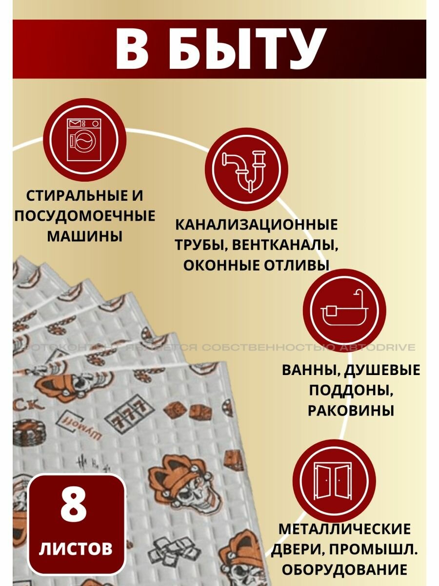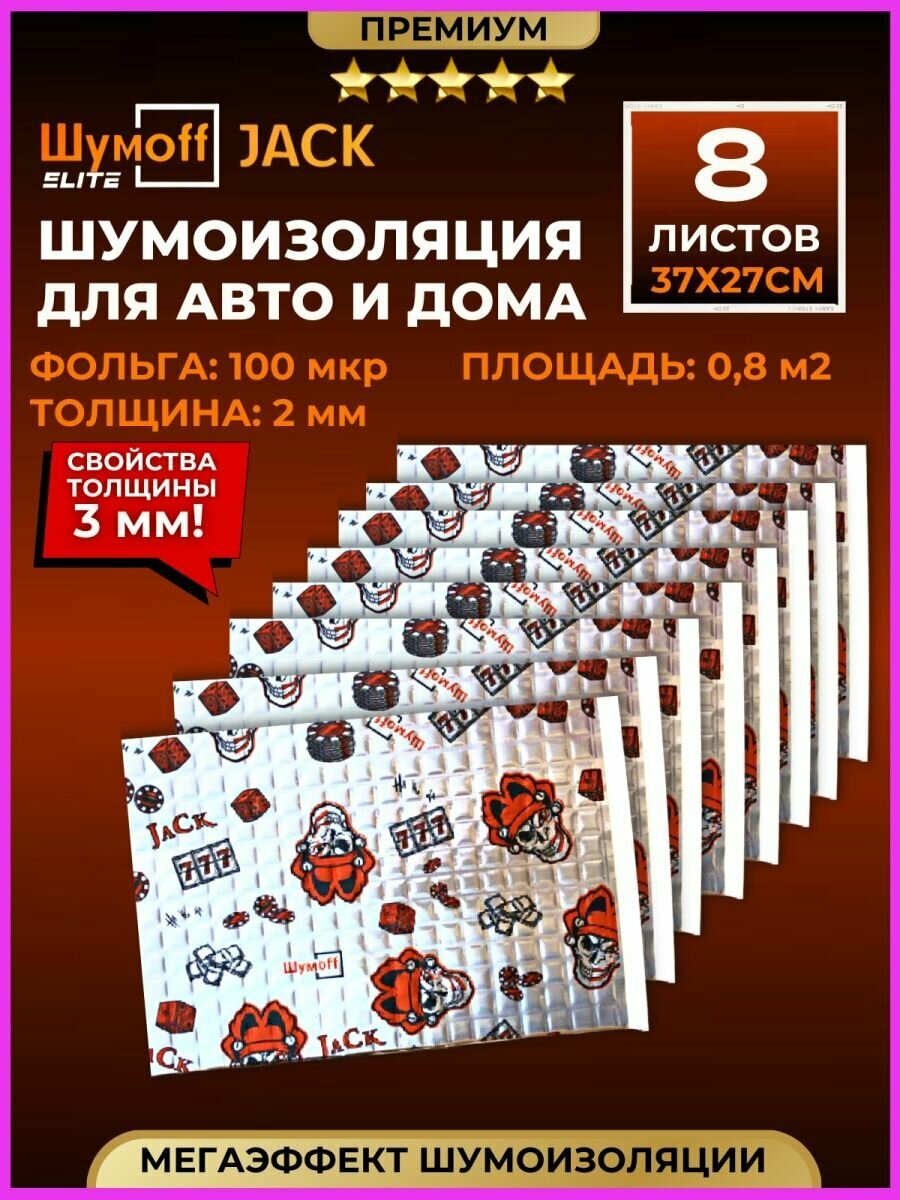 Купить Шумоизоляция для автомобиля Шумофф Джек 8 листов. Толщина 2 мм = 3 мм. Виброизоляция авто, вибропласт, вибродемпфер, шумка в машину. Шумоизоляция для дверей, крыши, потолка, капота, локеров. Звукоизоляция в авто Шумоff Jack. Шумоизоляция ванны, отлива