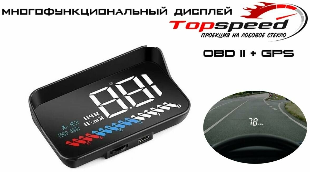 Проектор скорости на лобовое стекло TopSpeed М7 OBD II + GPS для всех автомобилей / проекция скорости на лобовое стекло / дисплей OBDII + USB интересное: