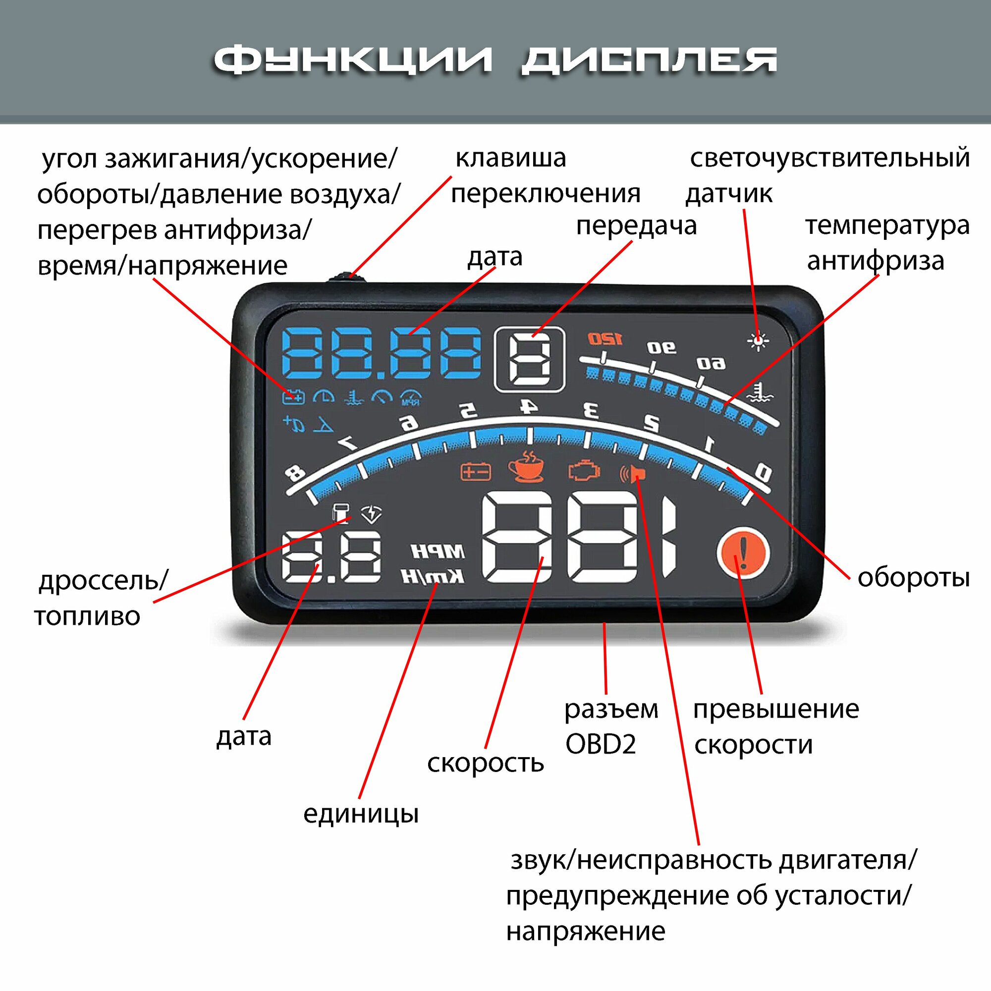 Проектор скорости на лобовое стекло TopSpeed E4 OBD2 для всех автомобилей / проекция скорости на лобовое стекло / дисплей USB интересное:
