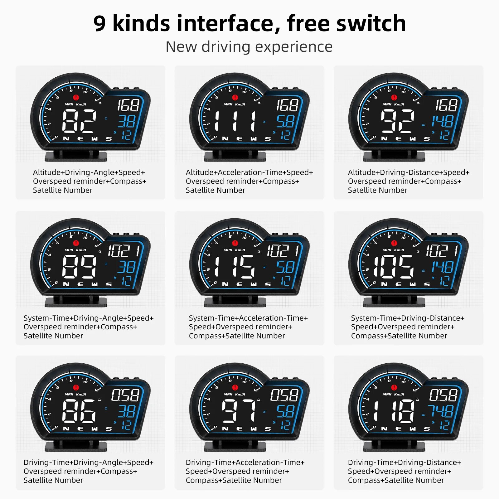 Автомобильный GPS-дисплей G16, многофункциональный одометр, спидометр, одометр, Бортовая компьютерная система сигнализации, blue