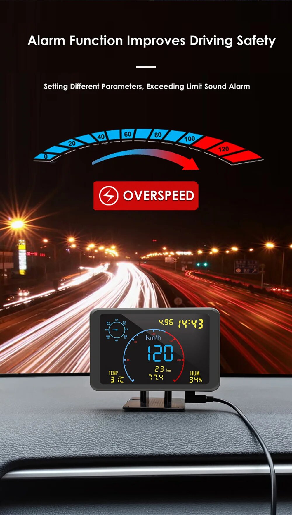 Новейший 4,7 ''большой экран GPS HUD цифровой спидометр бортовой компьютер пробег часы Отображение даты DC5-24V для всех автомобилей грузовиков интересное: