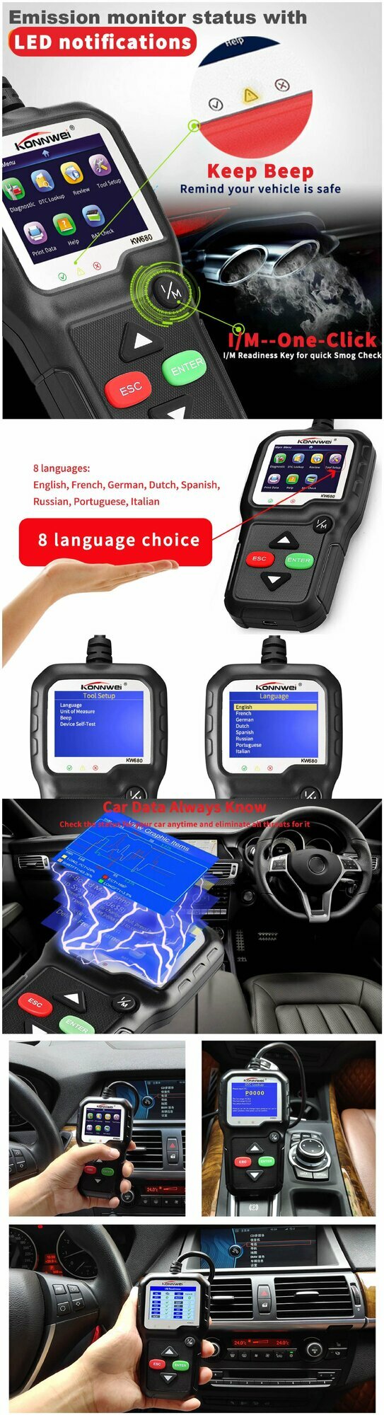Сканер KONNWEI KW680, для диагностики неисправностей автомобиля, OBD2 интересное:
