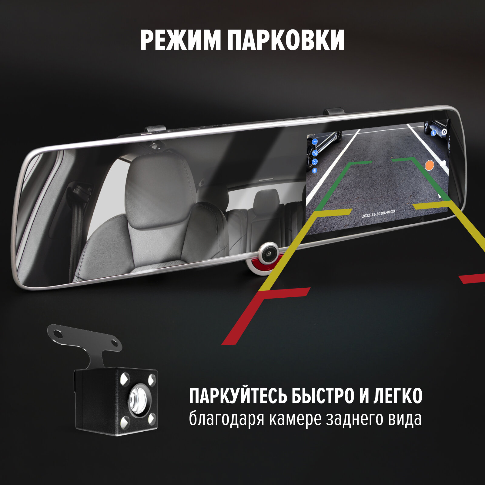 | Конструкция видеорегистратора | зеркало заднего вида, с экраном |